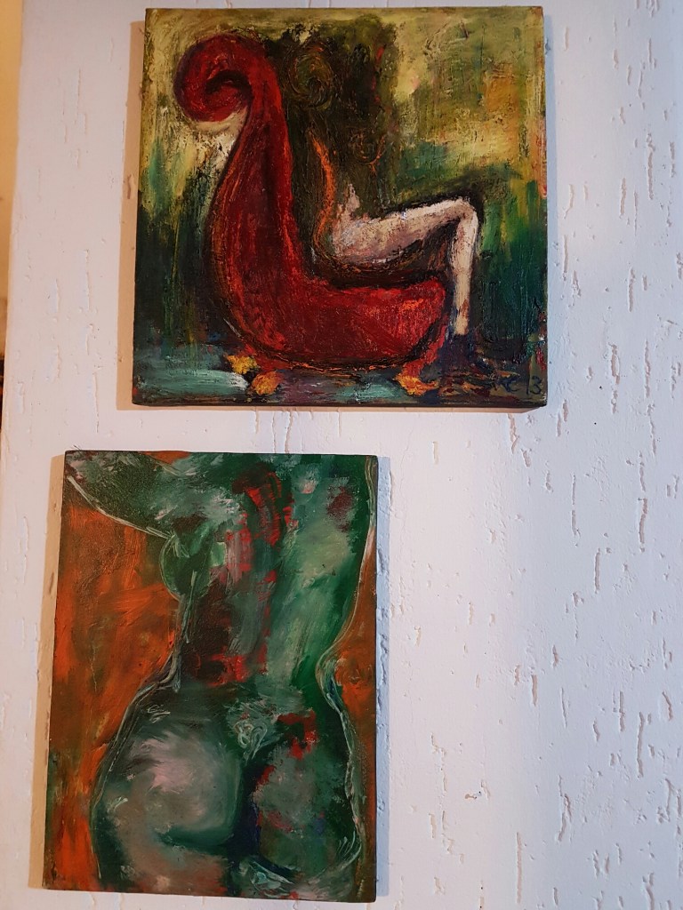 Private collection: Kamilla Czastka. Körper im Sessel 2014/grüner Akt. Both: Oil on canvas