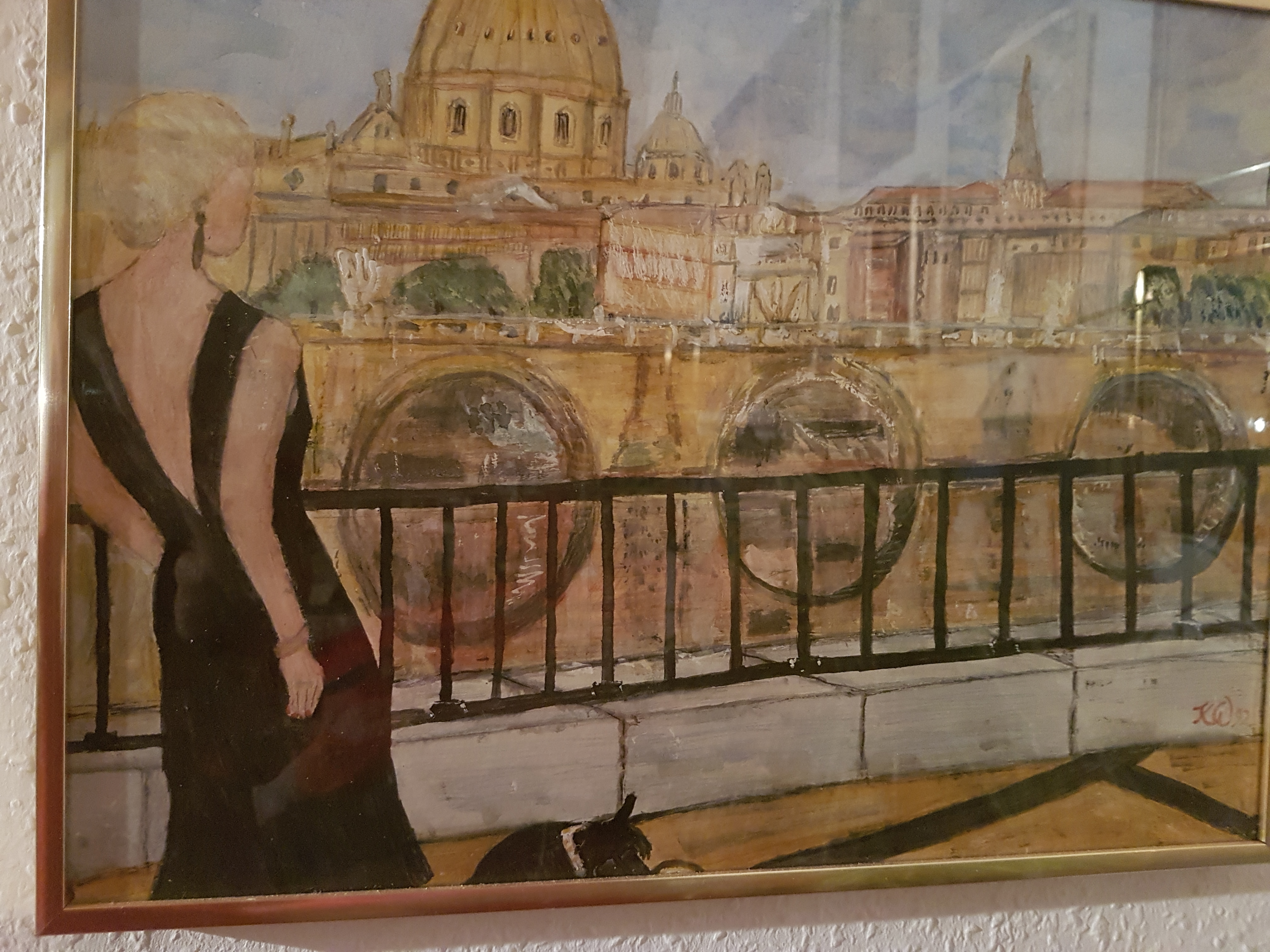 My mother loved to paint a blond woman and a black Scotty into her paintings. Guess who the model was 😉😊! Our Scotty was called Karoline. I didn’t have to pose. She always had me on her mind. She might still have – wherever she could be now…