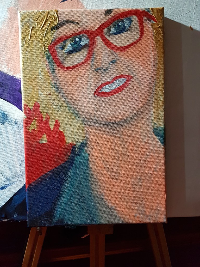 9. Juli 201718. Juli 2017 #Portraits: little self -portrait by Yvonne Wilken Acrylic on canvas. 2017. It refers to a photo made immediately after having bought a piece of art. I tried to show my fascination of the arts while painting it Teilen mit: Klicke, um auf X zu teilen (Wird in neuem Fenster geöffnet) X Klick, um auf Facebook zu teilen (Wird in neuem Fenster geöffnet) Facebook Gefällt mir Wird geladen … Veröffentlicht von yvonnenodaywithoutfinearts Oberstudienrätin für Englisch und Französisch im Ruhestand. Kunstschaffend und -begeistert und reisefreudig Zeige alle Beiträge von yvonnenodaywithoutfinearts