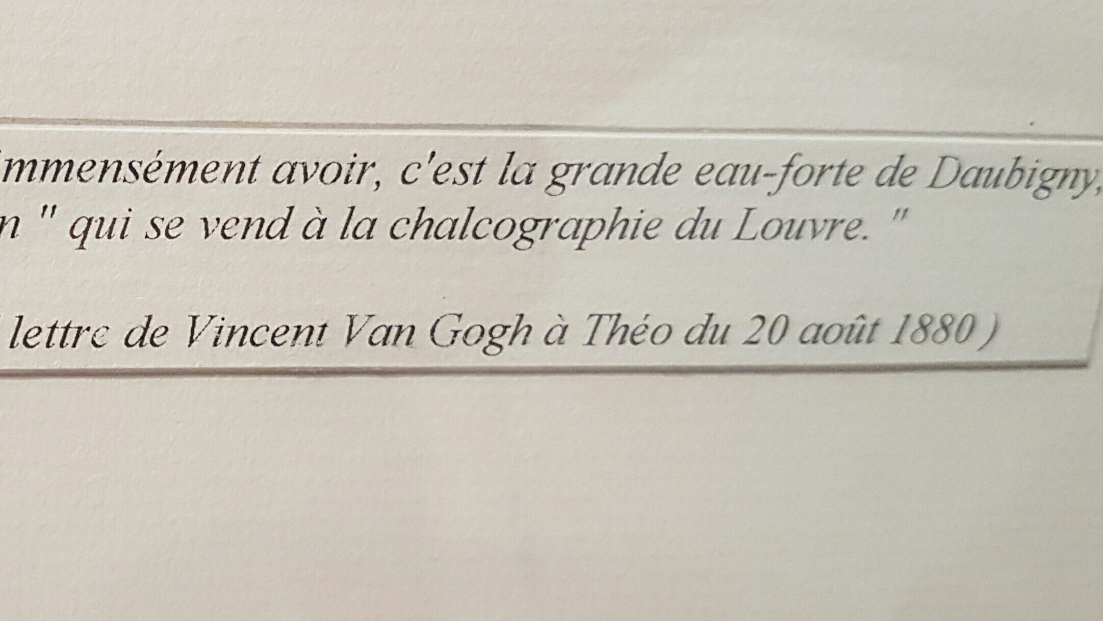 14. August 2017 An interesting document at the beautiful musée Daubigny in Auvers sur Oise. It joins both great artist celebrated here, although they never met. In a letter to his brother Theo VINCENT VAN GOGH speaks about a painting (aqua forte/Radierung) by CHARLES-FRANÇOIS DAUBIGNY he would like to possess. Teilen mit: Auf X teilen (Wird in neuem Fenster geöffnet) X Auf Facebook teilen (Wird in neuem Fenster geöffnet) Facebook Gefällt mir Wird geladen … Veröffentlicht von yvonnenodaywithoutfinearts Oberstudienrätin für Englisch und Französisch im Ruhestand. Kunstschaffend und -begeistert und reisefreudig Zeige alle Beiträge von yvonnenodaywithoutfinearts