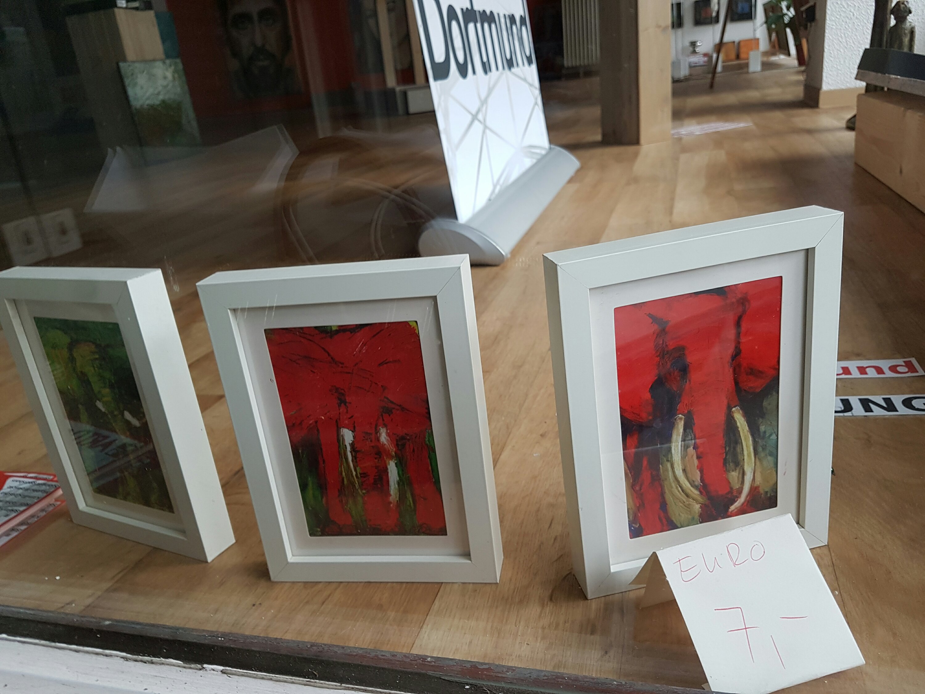 E. G.: Elephants by Kamilla Czastka, parrots by Sabina Wiggershaus, bull by Bekim Resing-Ibrahimi, manifold animals (raven/blue butterflies/stag/bear) by Igor Jabkunowskij, dogs by Yvonne Wilken (not to count the real dogs as visitors)