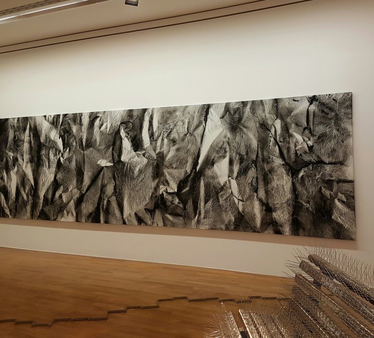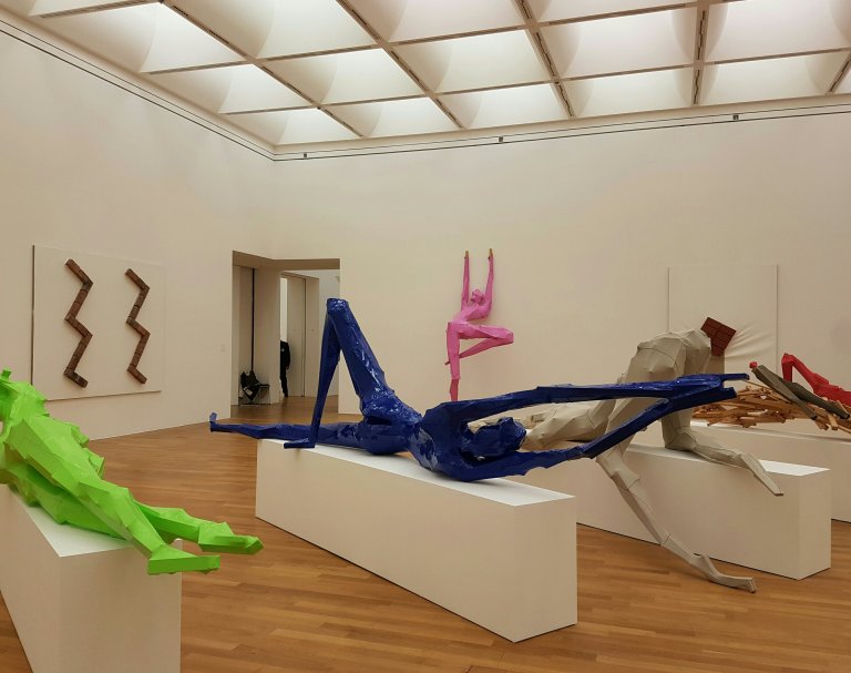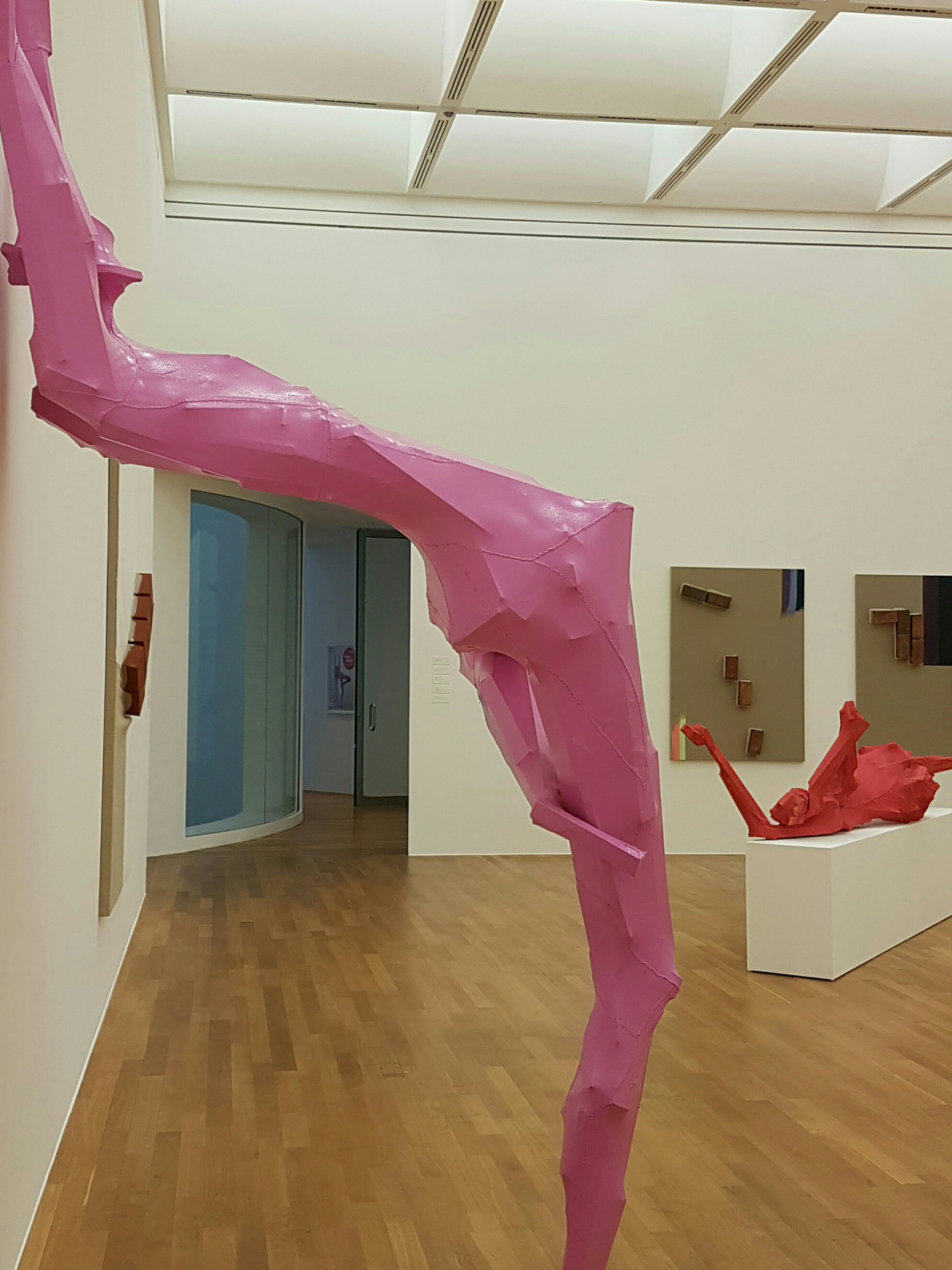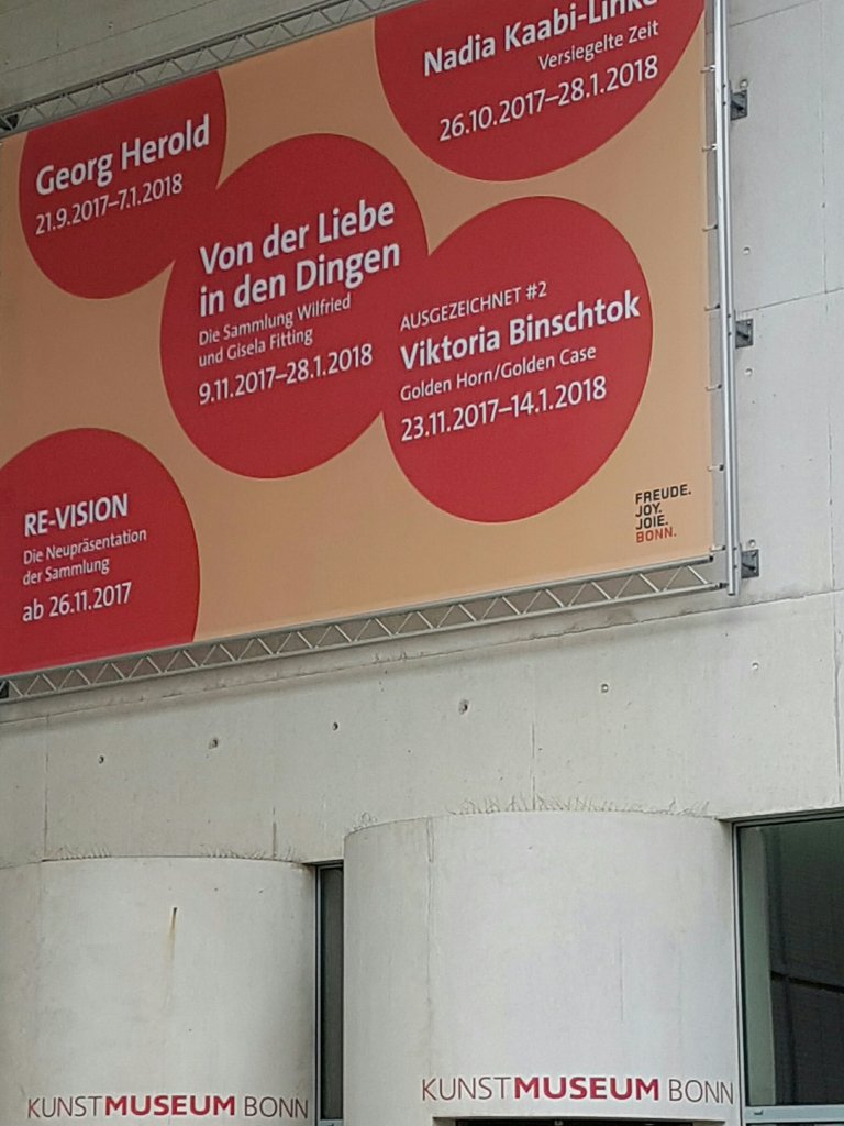 Die drei oben (Georg Herold mit seinen erstaunlichen, berührenden, farbenfrohen Wesen aus Dachlatten, Schrauben, Stoff, Zwirn, Strumpfhosen/Nadia Kaabi- Linke mit sehr interessanten Materialien (wie gebrannte Erde), Methoden und Themen, die oft etwas mit ihrer teils tunesischen, teils ukrainischen Heimat, aber auch mit Erfahrungen aus Berlin zu tun haben/ die Sammlung und Stiftung Fitting, deren schöner Name auf ein Gemälde von MAX ERNST