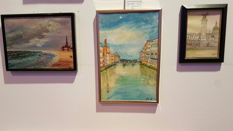 4. Januar 2018 LovelyLandscapes (not lake but sea and rivers (Arno and Seine) These are three of my old paintings from the landscape period hanging at the exhibition Art Dortmund and friends now. From left to right: HOULGATE/NORMANDIE (OIL 1991) FIRENZE (WATER COLOUR/GOUACHE 2013) PARIS PONT ALEXANDRE III (WATER COLOUR 1994) Teilen mit: Auf X teilen (Wird in neuem Fenster geöffnet) X Auf Facebook teilen (Wird in neuem Fenster geöffnet) Facebook Gefällt mir Wird geladen … Veröffentlicht von yvonnenodaywithoutfinearts Oberstudienrätin für Englisch und Französisch im Ruhestand. Kunstschaffend und -begeistert und reisefreudig Zeige alle Beiträge von yvonnenodaywithoutfinearts