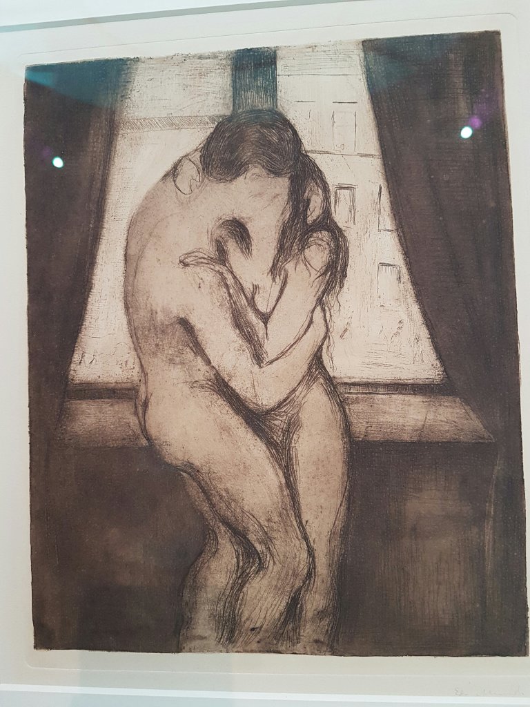 Die Munch Sonderausstellung in 2 Räumen zeigt Berühmtes und weniger Berühmtes zum Thema „Sehnsucht und Erwartung“ bis zum 22. April 2018. Die Radierung „der Kuss“ lässt mich mein Blogthema Kuss und Umarmung auch jenseits des 100. Beispiels wieder aufnehmen.