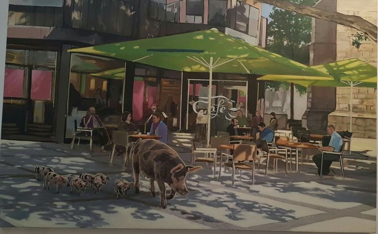 present the scene. The only amazing aspect in the urban area are the wild boars passing eventually along the street.