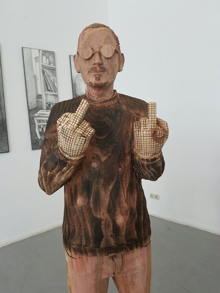 8. Mai 2018 The artist and his work: Przemyslaw Perschke @ RKB exhibition Kunst.radikal Wonderful sculpture made of wood with an awesome similarity Teilen mit: Auf X teilen (Wird in neuem Fenster geöffnet) X Auf Facebook teilen (Wird in neuem Fenster geöffnet) Facebook Gefällt mir Wird geladen … Veröffentlicht von yvonnenodaywithoutfinearts Oberstudienrätin für Englisch und Französisch im Ruhestand. Kunstschaffend und -begeistert und reisefreudig Zeige alle Beiträge von yvonnenodaywithoutfinearts