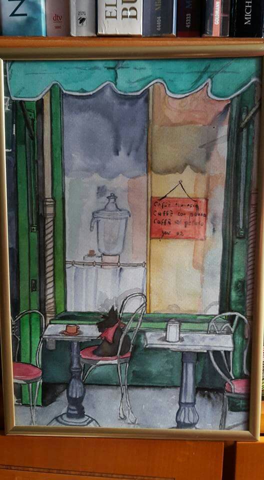 12. Mai 2018 #Caféterraces (7) by Yvonne Wilken Italian bar terrace in N. Y.. watercolour 1992. Private collection Teilen mit: Auf X teilen (Wird in neuem Fenster geöffnet) X Auf Facebook teilen (Wird in neuem Fenster geöffnet) Facebook Gefällt mir Wird geladen … Veröffentlicht von yvonnenodaywithoutfinearts Oberstudienrätin für Englisch und Französisch im Ruhestand. Kunstschaffend und -begeistert und reisefreudig Zeige alle Beiträge von yvonnenodaywithoutfinearts