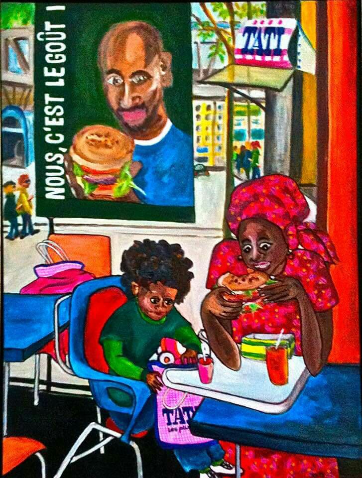 In a little café near Tati in Paris is the title of this beautiful detailed colourful painting, found in the collection/facebook group Kunterbunte Kunst
