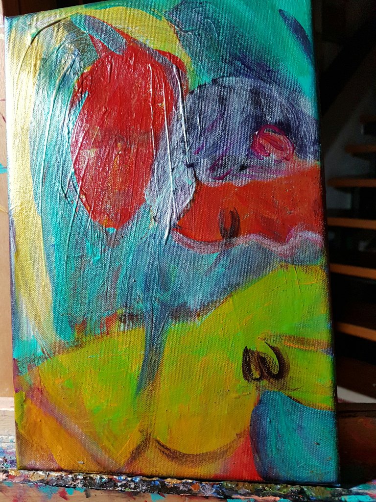 Subconscious painting (3): grosses bises by Yvonne Wilken#SubconsciousPainting : Grosses Bises. Acryl auf Leinwand 20 x 30 – subconscious paintings nenne ich meine Gemälde, die durch Aufeinanderschichten von Farben entstehen, ohne dass ich ein spezielles Sujet im Blick habe. Sie malen sich gewissermaßen selbst, aus dem Unterbewusstsein. Wenn ich das Gefühl habe, darin etwas zu erkennen, male ich einige (manchmal wenige) Aspekte dazu, um das Bild zu vervollständigen. So erklären sich auch die Untertitel. Zum 1. Mal habe ich bei diesem Bild ein kleines Format gewählt