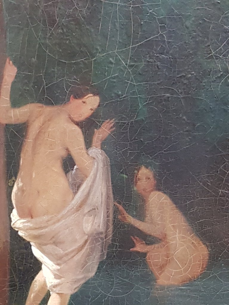 Berlin: Carl Blechen (1798 Cottbus – 1840 Berlin) Vielfalt, Detailtreue und Schwung beim Wintergarten und im Park Borghese (noch heute wieder erkennbare Details), intensive Intimität im Bild der Badenden und geheimnisvolle dunkle Atmosphäre im Grabbild