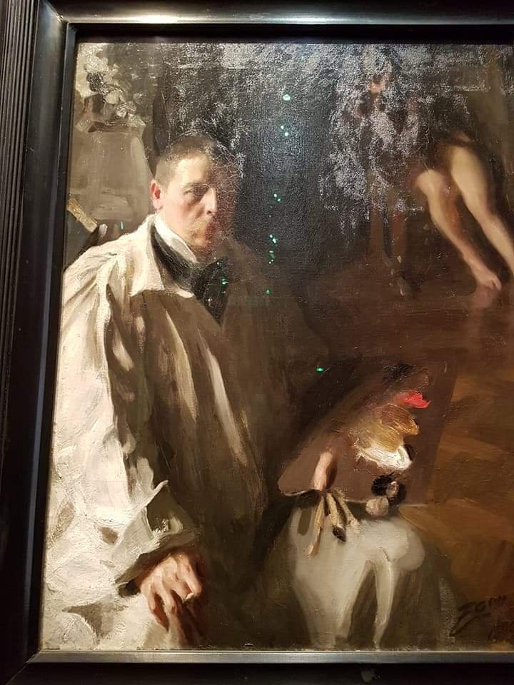 Seen in the great retrospective of the Swedish painter Anders Zorn (1860-1920) of Petit Palais Paris last year in November (Selbstbildnis mit Staffelei und Zigarette)