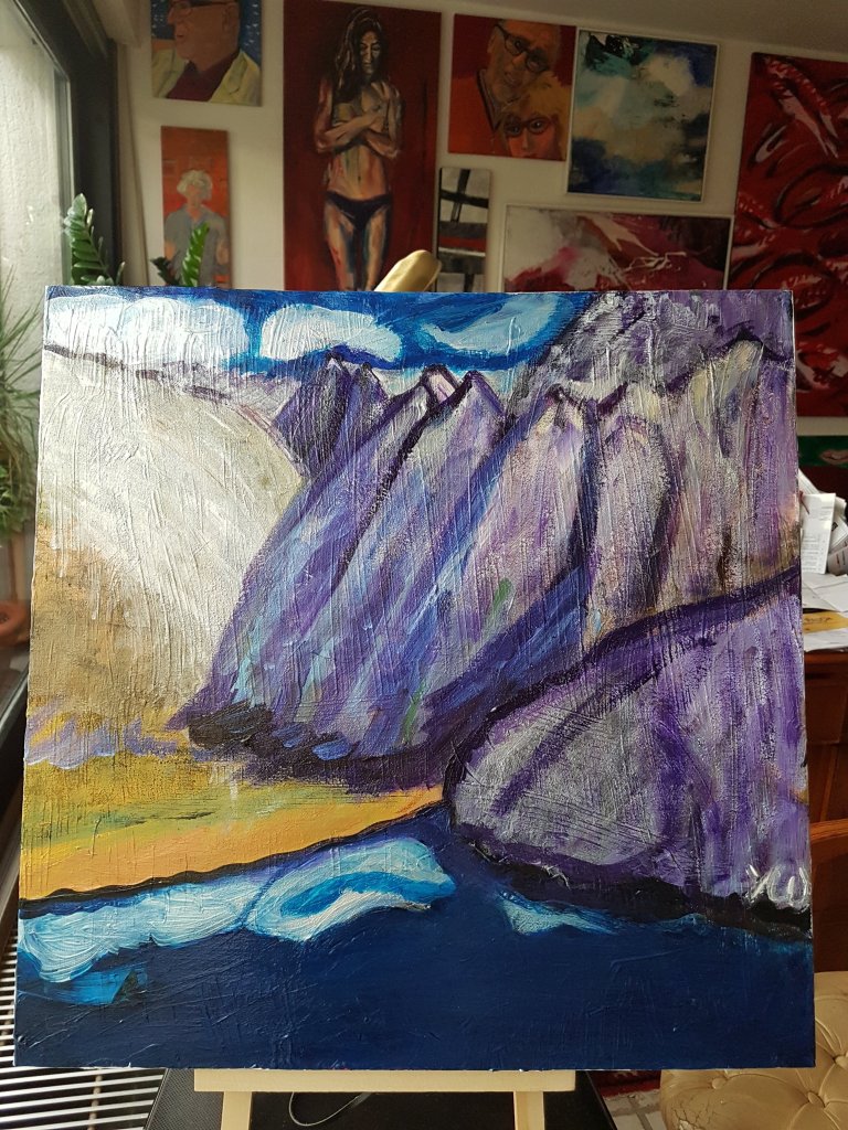 3. November 2018 MAGIC MOUNTAINS (2) by Yvonne Wilken Acrylic and cinnamon on canvas. Still near my „Swiss wall“ but soon in Wißstr.22 ART Dortmund and friends Teilen mit: Auf X teilen (Wird in neuem Fenster geöffnet) X Auf Facebook teilen (Wird in neuem Fenster geöffnet) Facebook Gefällt mir Wird geladen … Veröffentlicht von yvonnenodaywithoutfinearts Oberstudienrätin für Englisch und Französisch im Ruhestand. Kunstschaffend und -begeistert und reisefreudig Zeige alle Beiträge von yvonnenodaywithoutfinearts