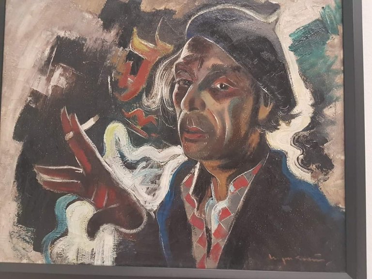 Eugen Knaus (1900 -1976) from Mannheim painting his colleague painter Xaver Fuhr who had to leave Mannheim in the year 1942, when this work was painted, for political reasons (als entartet eingestuft) – seen in Städtische Kunstgalerie Karlsruhe, situated near the ZKM (Zentrum für Kunst und Medien)