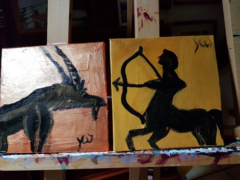 16. November 201828. Dezember 2018 On the easel: new signs of the Zodiac The next to come…capricorne and sagittarius – Steinbock und Schütze noch auf der Staffelei… Teilen mit: Auf X teilen (Wird in neuem Fenster geöffnet) X Auf Facebook teilen (Wird in neuem Fenster geöffnet) Facebook Gefällt mir Wird geladen … Veröffentlicht von yvonnenodaywithoutfinearts Oberstudienrätin für Englisch und Französisch im Ruhestand. Kunstschaffend und -begeistert und reisefreudig Zeige alle Beiträge von yvonnenodaywithoutfinearts