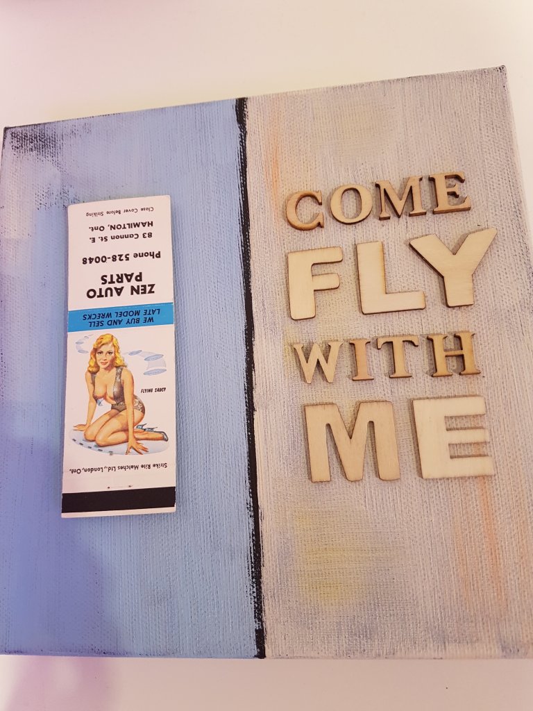 Created with an old American matchbox with pin-up girl cover from Willie’s collection and a great slogan. This one in private collection, others from Willie’s collection are presented at ART Dortmund and friends and ready to be bought – always a nice present!