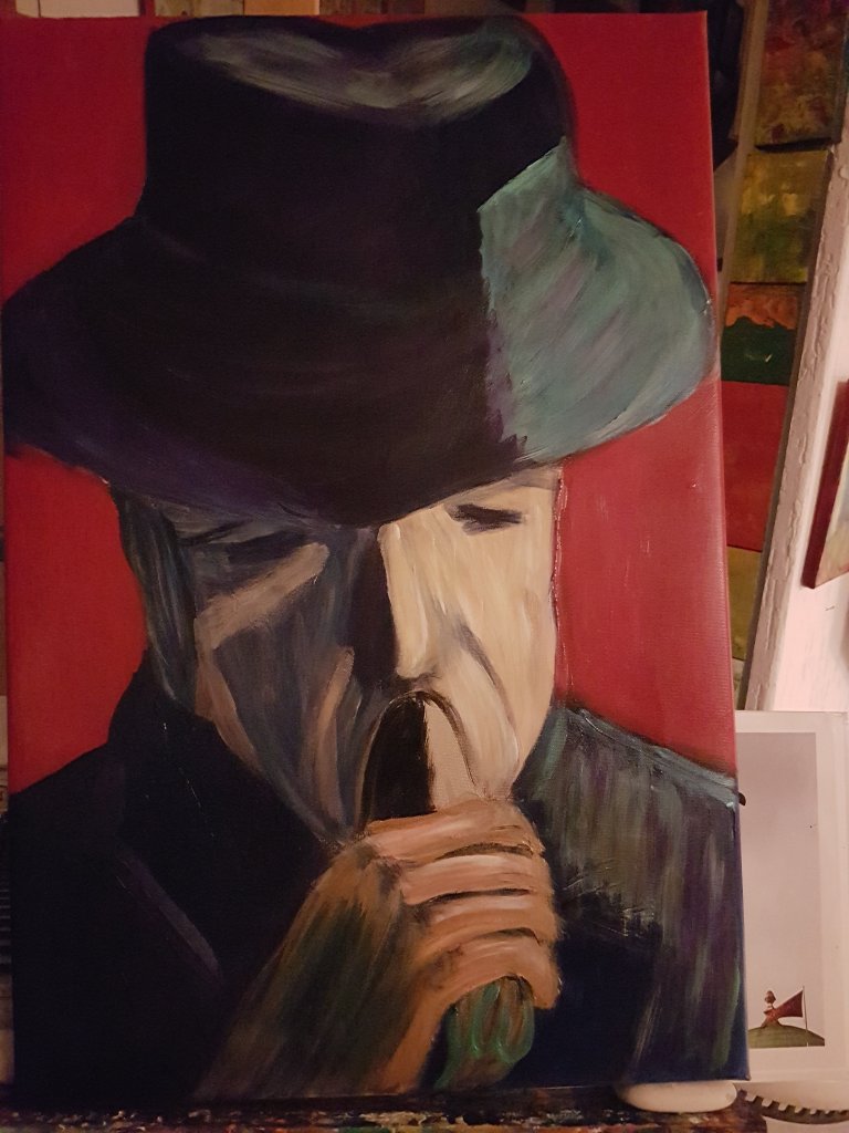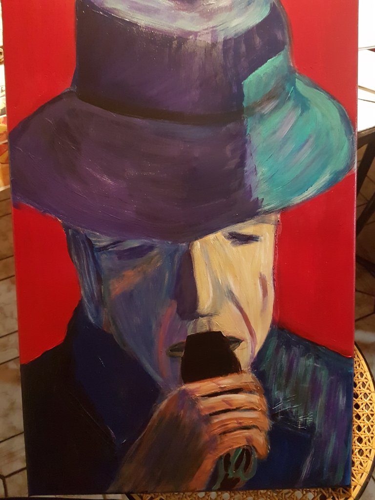 17. Dezember 201826. Dezember 2018 On the easel: Powerful Portrait (32) /Alles unter einem Hut (4): Leonard Cohen by Yvonne Wilken Famous Blue Raincoat. 40 x 60. Acrylic on mixed media. Soon at Art Dortmund and friends. Wißstr.22 Teilen mit: Auf X teilen (Wird in neuem Fenster geöffnet) X Auf Facebook teilen (Wird in neuem Fenster geöffnet) Facebook Gefällt mir Wird geladen … Veröffentlicht von yvonnenodaywithoutfinearts Oberstudienrätin für Englisch und Französisch im Ruhestand. Kunstschaffend und -begeistert und reisefreudig Zeige alle Beiträge von yvonnenodaywithoutfinearts