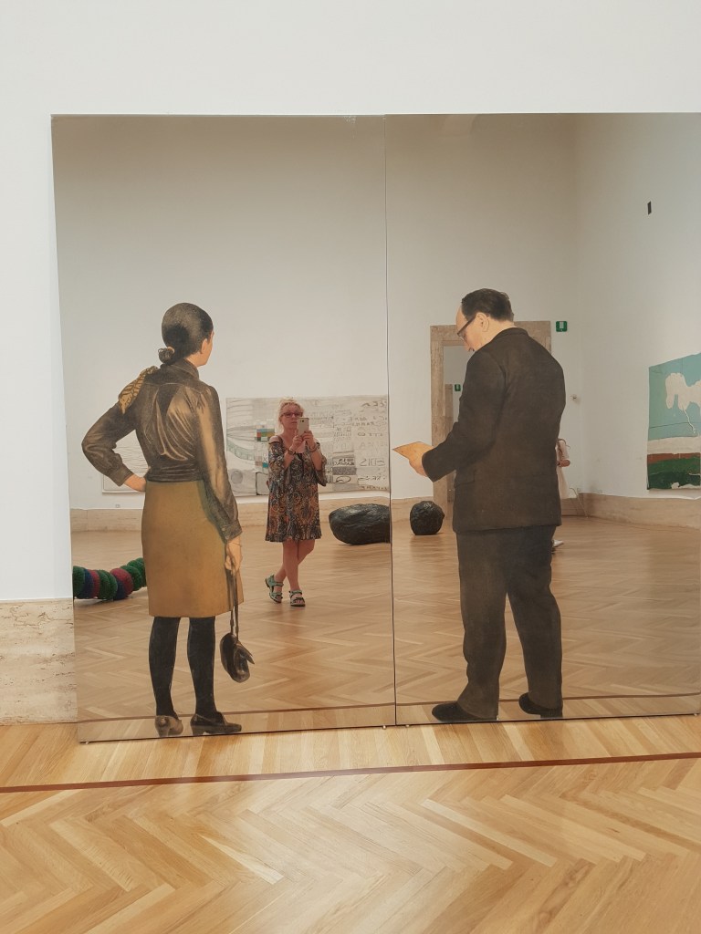 23. Dezember 201823. Dezember 2018 Remembering Rome MirrorReflections (part28) By Michelangelo Pistoletto.1968. Mirror installation with acrylic paintings: I visitatori YvonneWilkenPhotography 5/2018 Teilen mit: Auf X teilen (Wird in neuem Fenster geöffnet) X Auf Facebook teilen (Wird in neuem Fenster geöffnet) Facebook Gefällt mir Wird geladen … Veröffentlicht von yvonnenodaywithoutfinearts Oberstudienrätin für Englisch und Französisch im Ruhestand. Kunstschaffend und -begeistert und reisefreudig Zeige alle Beiträge von yvonnenodaywithoutfinearts