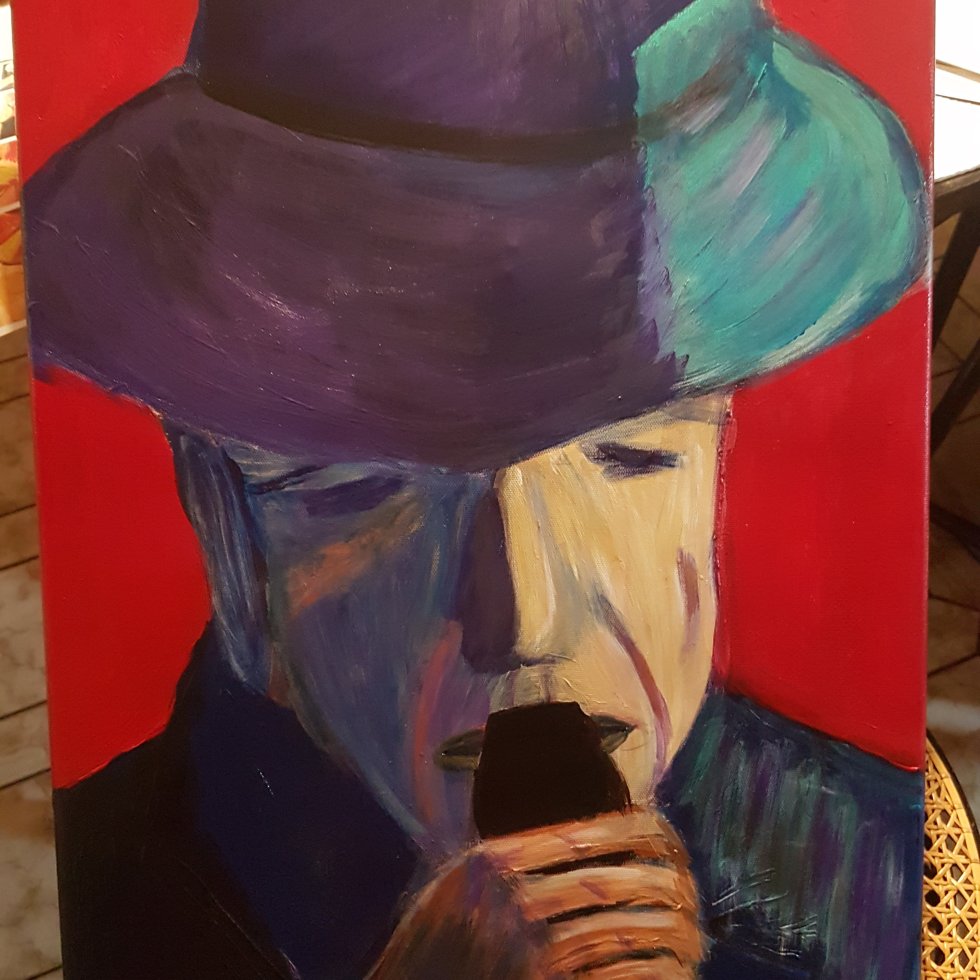 On the easel: Powerful Portrait (32) /Alles unter einem Hut (4): Leonard Cohen by Yvonne Wilken