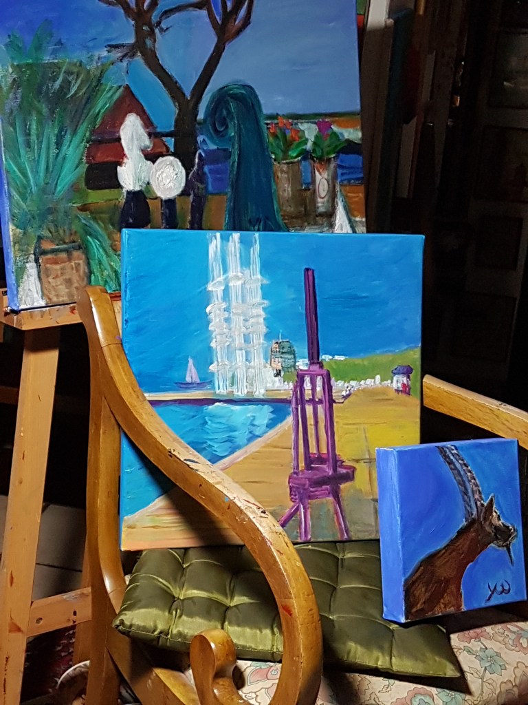 17. Januar 201917. Januar 2019 On the easel: BLUE, BLUE, BLUE by Yvonne Wilken 2019 All three acrylic on canvas – from up to down: Stilllife with balcony and Y-tree/ Thessaloniki/ Capricorne 3 Teilen mit: Auf X teilen (Wird in neuem Fenster geöffnet) X Auf Facebook teilen (Wird in neuem Fenster geöffnet) Facebook Gefällt mir Wird geladen … Veröffentlicht von yvonnenodaywithoutfinearts Oberstudienrätin für Englisch und Französisch im Ruhestand. Kunstschaffend und -begeistert und reisefreudig Zeige alle Beiträge von yvonnenodaywithoutfinearts