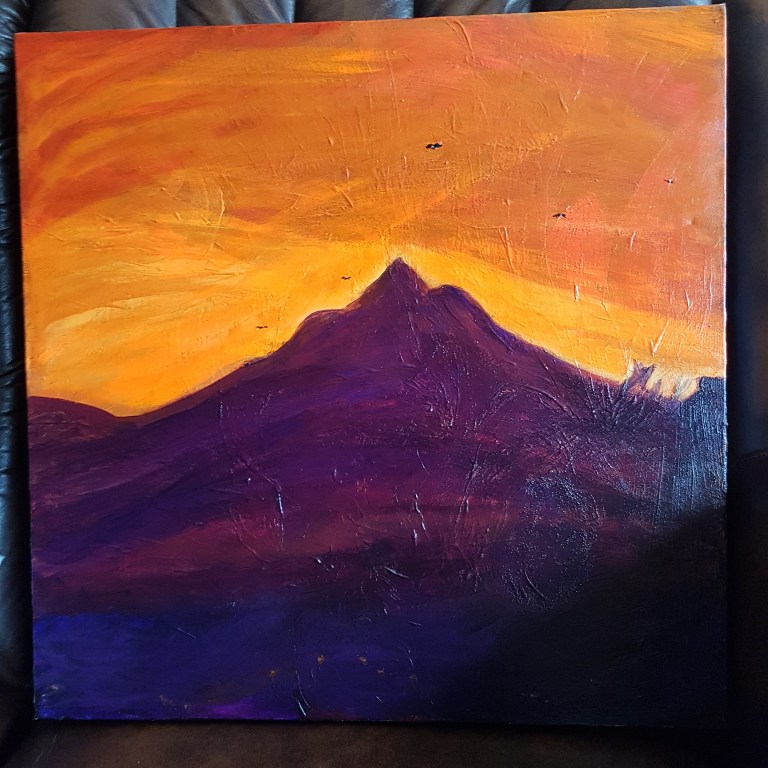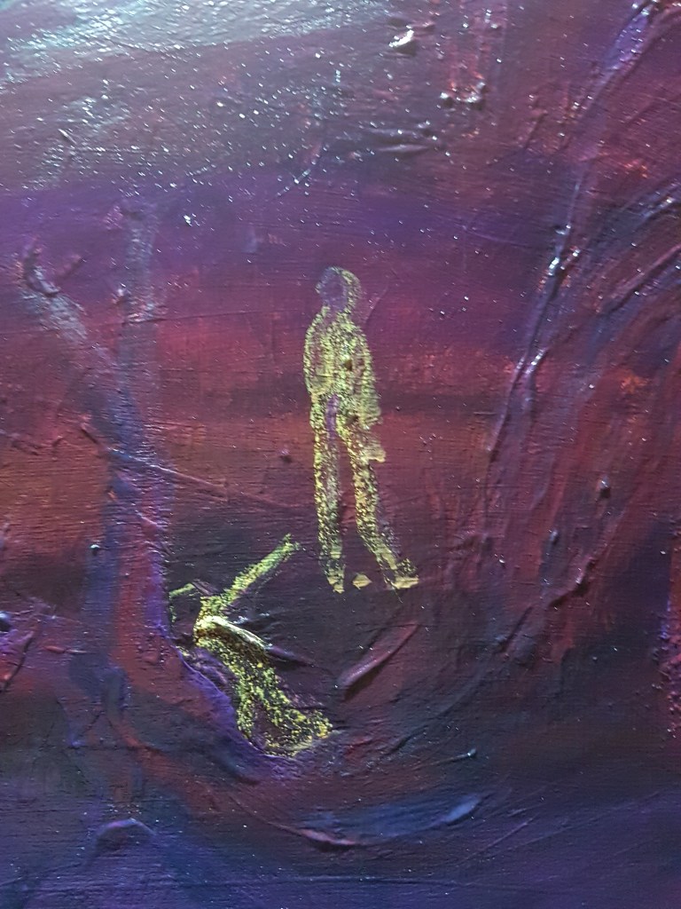 By Yvonne Wilken – Acrylic and mixed media on canvas (detail): my cousin posted a photo from her American hometown in Oregon at sunrise (to be seen here, too) it was absolutely inspiring for me
