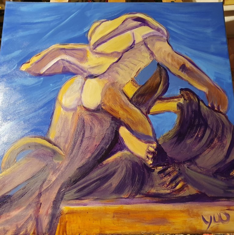 Inspired by my travel to Karlsruhe last month. Sculptures from the 18th century in front of the castle (= Badisches Landesmuseum) : a free interpretation of the subject