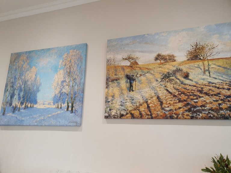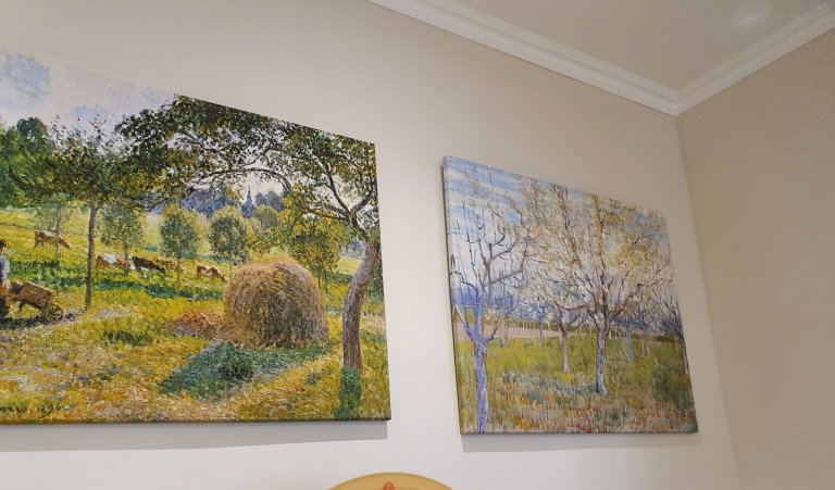 Landhaus am Fillerberg: Pissaro und Co – Drucke auf Leinwand, aber sie passen in den hellen Wintergarten und zeugen von der Kunstfreude der Besitzer.