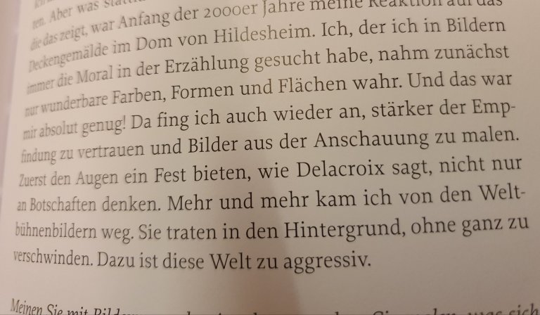 22. April 2019 ARTquotation (100) by Eugène Delacroix via Johannes Heisig in the book by Michael Hametner Teilen mit: Auf X teilen (Wird in neuem Fenster geöffnet) X Auf Facebook teilen (Wird in neuem Fenster geöffnet) Facebook Gefällt mir Wird geladen … Veröffentlicht von yvonnenodaywithoutfinearts Oberstudienrätin für Englisch und Französisch im Ruhestand. Kunstschaffend und -begeistert und reisefreudig Zeige alle Beiträge von yvonnenodaywithoutfinearts