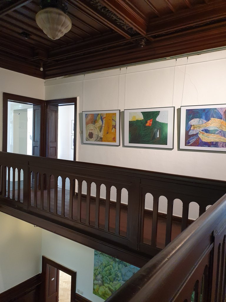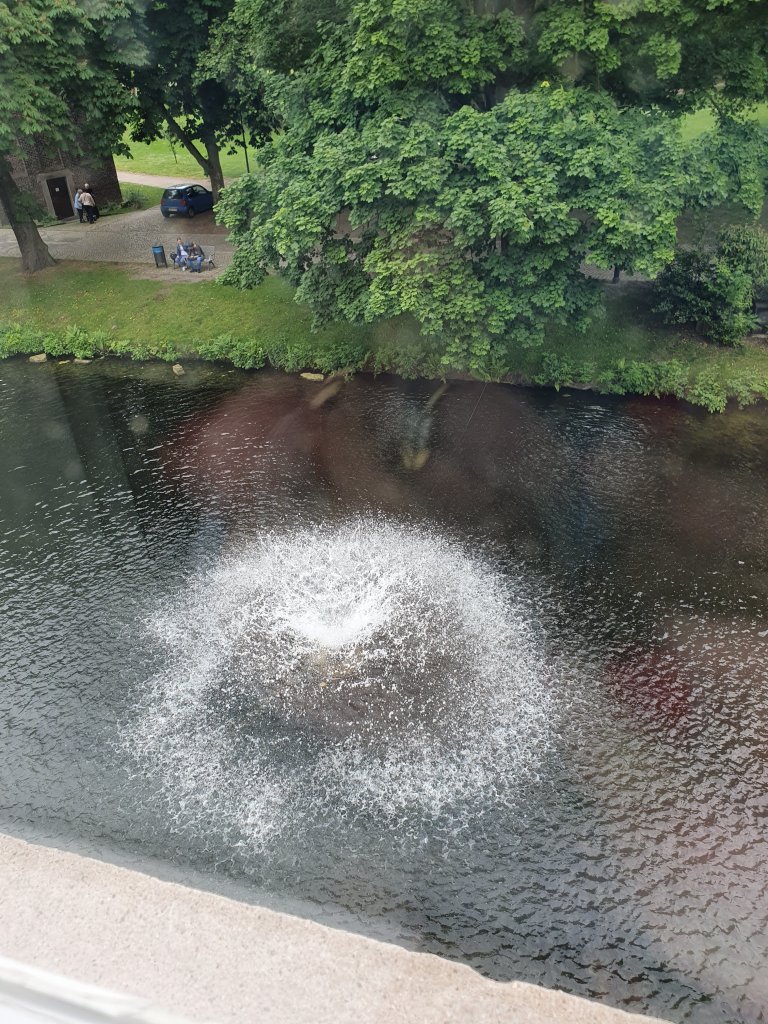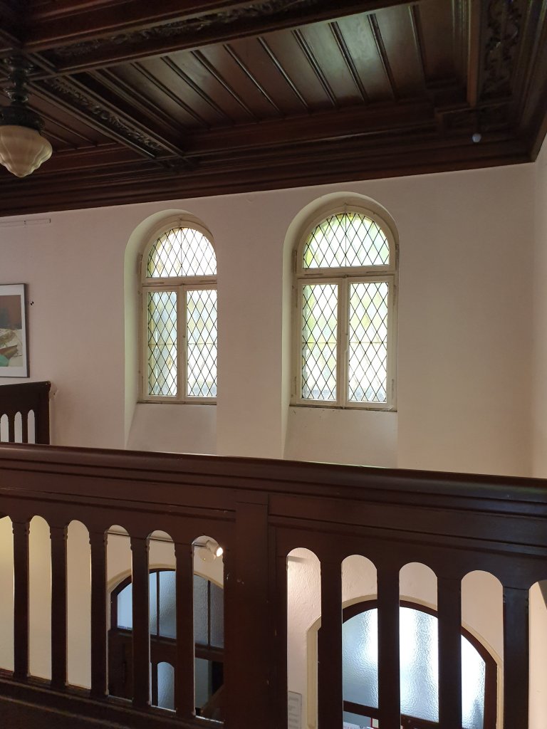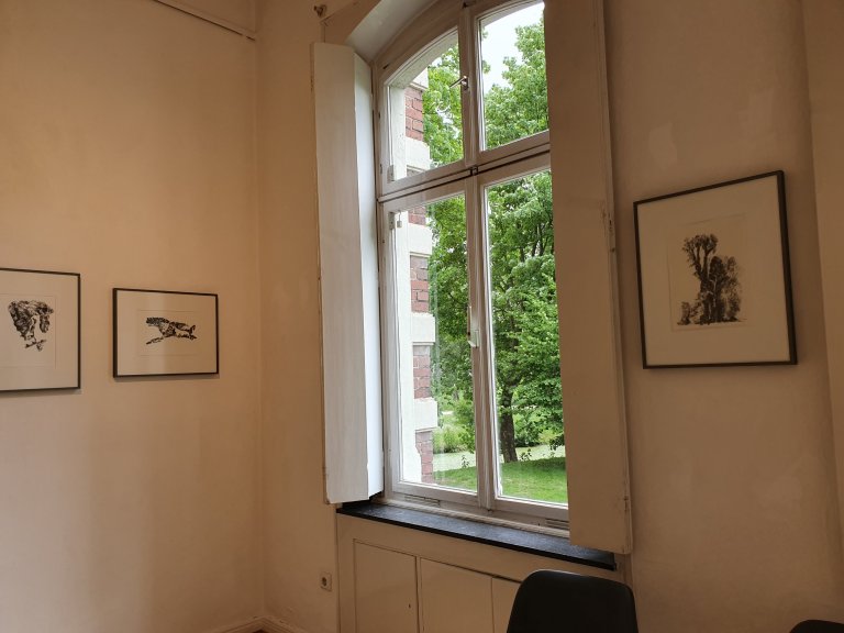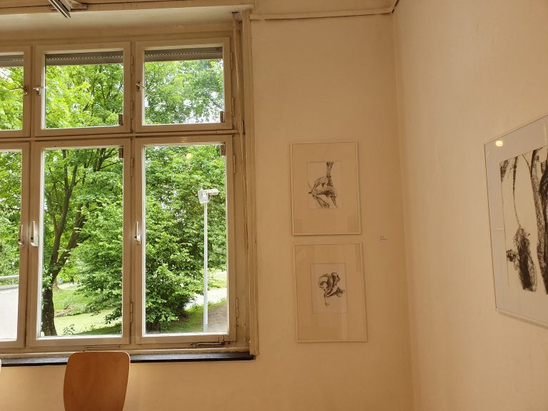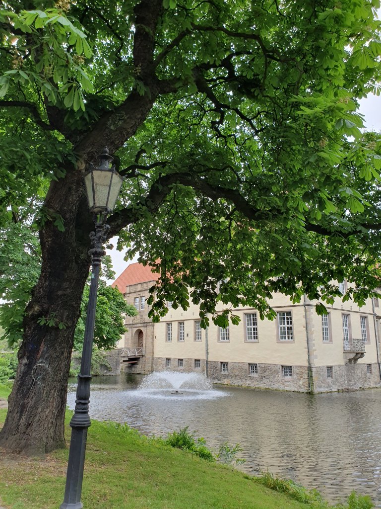 Ausstellung von Andrea Küsters Werken in der städtischen Galerie des Emschertal-Museums Schloss Strünkede – nach zu vielen kleinen schwarz-weißen Bildern (für meinen bunten Geschmack) wanderte ich in der „cosy atmosphere“ des alten Fachwerkhauses auch an bunten Werken der Künstlerin vorbei (mit dem Ausblick vom Fenster auf das größere Enschertal Museum, das Wasserschloss, das in der Ausstellung „Wunderkammer“ auch mehrmals als Modell und Motiv diente) – um als das schönste Exemplar der Küster-Ausstellung doch ein schwarzweißes zu sehen: Traum (mit den beiden Köpfen).