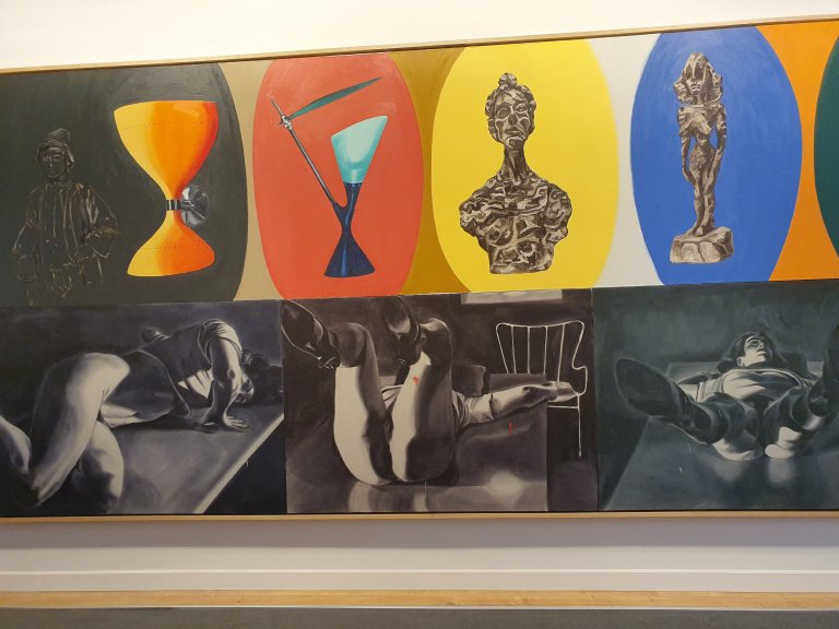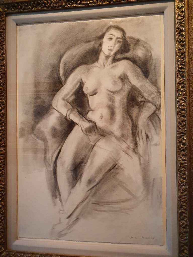 What I really loved at Art Basel 2019 are the nudes: I showed the impressive and convincing naked selfportrait by Joan Semmel already in mid- June. But here are more: Bronze bust by Alexander Archipenko (1925) the large orange and flesh (2014) (with a detail) by Pat Steir, standing female nudes by George Grosz (1940) and my favourite, the wonderful sitting nude by Henri Matisse (1923)