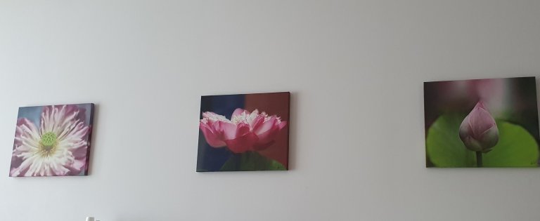 Marienkrankenhaus Schwerte. Ich weiß nicht, wer die 3 Fotodrucke der Seerose gemacht hat (aber sie gehören zu einer limitierten Auflage, signiert), aber sie machen mir vom ersten Augenblick meines ungeplanten Krankenaufenthaltes Freude