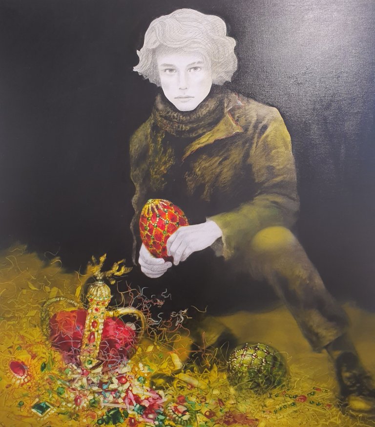 What I like is the mix of graphite or pencil AND oil or acrylic in the works of