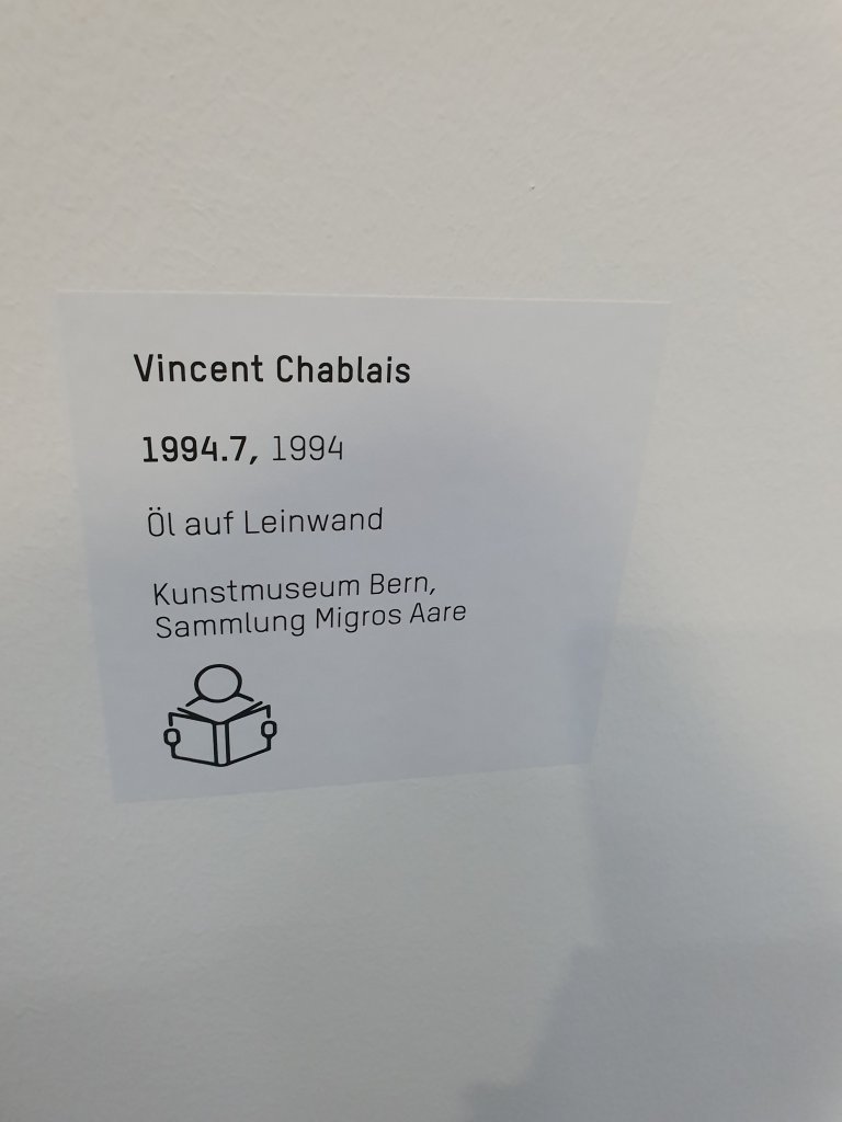1. Juli 20191. Juli 2019 In front of ART (29) by Vincent Chablais (1994) Kunstmuseum Bern im Juni 2019 Teilen mit: Klicke, um auf X zu teilen (Wird in neuem Fenster geöffnet) X Klick, um auf Facebook zu teilen (Wird in neuem Fenster geöffnet) Facebook Gefällt mir Wird geladen … Veröffentlicht von yvonnenodaywithoutfinearts Oberstudienrätin für Englisch und Französisch im Ruhestand. Kunstschaffend und -begeistert und reisefreudig Zeige alle Beiträge von yvonnenodaywithoutfinearts