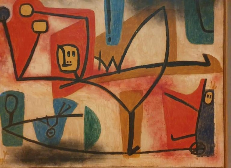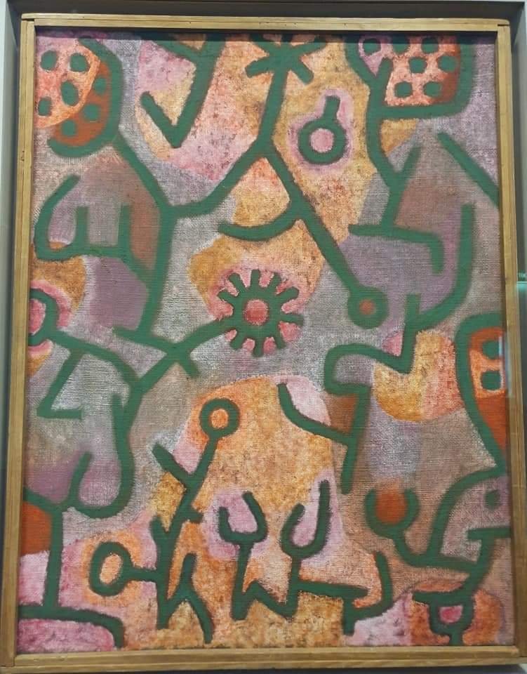 Neben Max Ernst und Ferdinand Hodler ist auch Paul Klee (1879 – 1940) mir dieses Jahr besonders ans Herz gewachsen. Er „lief“ mir dieses Jahr mehrfach über den Weg und „begleitete“ mich von da an auch in der Lektüre von 3 verschiedenen Klee-Büchern (Klee in Düsseldorf/im Bauhaus/mit Klee durch Bern): von Januar in der wunderbaren Ausstellung „Sammlung auf Reisen“ der Kunstsammlung NRW in Düsseldorf bis Juni in Klees Geburtsstadt Bern im Kunstmuseum und vor allem in dem ihm gewidmeten, der natürlichen Berglandschaft angepassten Zentrum Paul Klee in Bern. Sowohl sein faszinierender Blick auf Portraits und Fotos wie die einzigartige geheimnisvolle Symbolsprache seiner Bilder, deren spannende Titel ich ja schon teilweise unter POETIC PAINTING TITLES erwähnte, haben mich sehr inspiriert: hier vor allem die HEROISCHEN ROSEN (1938) in Düsseldorf und der ÜBERMUT (1939) in Bern (auch Klees Materialien waren interessant…)