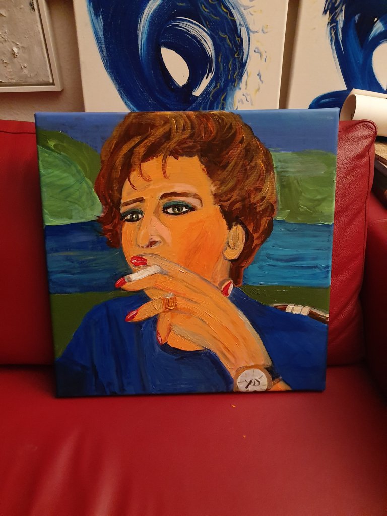 7. August 2019 Die Zigarette in der Kunst/la cigarette aux beaux arts/cigarettes in art (51) Portrait Maman fumante – my mother, smoking by Yvonne Wilken, Acrylic on canvas, 40 x 40 Teilen mit: Auf X teilen (Wird in neuem Fenster geöffnet) X Auf Facebook teilen (Wird in neuem Fenster geöffnet) Facebook Gefällt mir Wird geladen … Veröffentlicht von yvonnenodaywithoutfinearts Oberstudienrätin für Englisch und Französisch im Ruhestand. Kunstschaffend und -begeistert und reisefreudig Zeige alle Beiträge von yvonnenodaywithoutfinearts