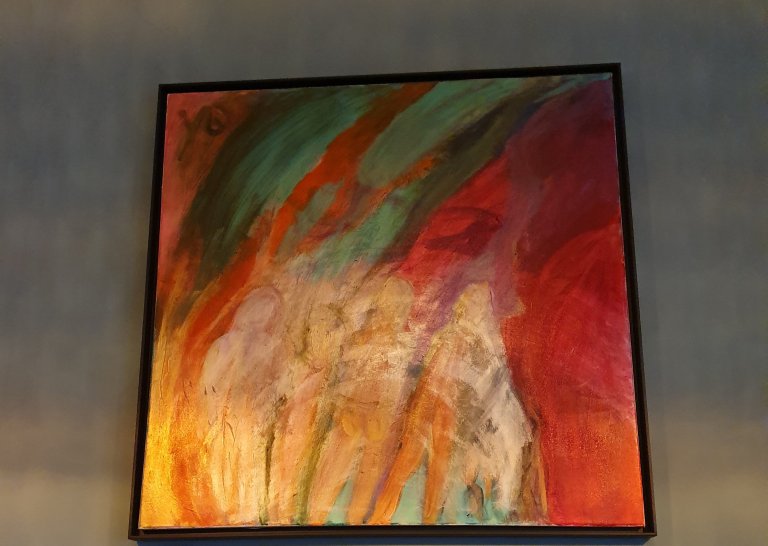 Sehr schön ausgeleuchtet in der Café-Bar mit der guten italienischen Küche, PIYA, im Kreuzviertel von Dortmund – mein Yvonne Wilken Painting von 2018 mit 3 Titeln: