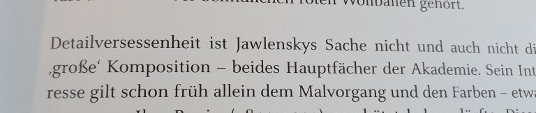 28. August 201928. August 2019 ARTquotation (110) in a book about Alexej von Jawlensky Zuglektüre von Roman Zieglgänsberger in Wienands Kleine Reihe der Künstlerbiografien 2016 Teilen mit: Klicke, um auf X zu teilen (Wird in neuem Fenster geöffnet) X Klick, um auf Facebook zu teilen (Wird in neuem Fenster geöffnet) Facebook Gefällt mir Wird geladen … Veröffentlicht von yvonnenodaywithoutfinearts Oberstudienrätin für Englisch und Französisch im Ruhestand. Kunstschaffend und -begeistert und reisefreudig Zeige alle Beiträge von yvonnenodaywithoutfinearts