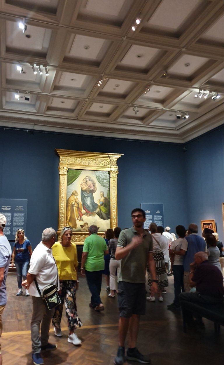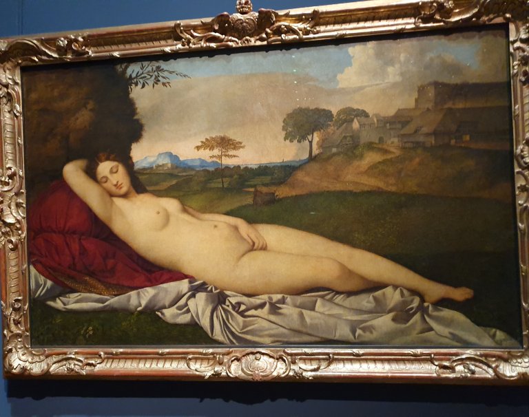 Die Dresdener Zwinger-Ausstellung der alten Meister lockt mit großen Namen und großen Gemälden: die von GIORGIONE begonnene schlafende Venus, die von seinem Schüler bzw. Mitarbeiter TIZIAN vollendet wurde, der Canaletto-Blick auf Dresden von Bernardo BELLOTTO (Canaletto), und alle interessieren sich natürlich für die sixtinische Madonna von RAFFAEL. In einem anderen Raum derselben Etage hängen Nicolas POUSSIN und Peter Paul RUBENS und einige andere. Dennoch ist die Ausstellung zur Zeit recht klein. Man muss auf die Renovierung der weiteren Etagen warten…ein Grund, nach dem 7. Dezember noch einmal nach Dresden zu kommen