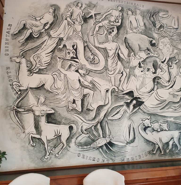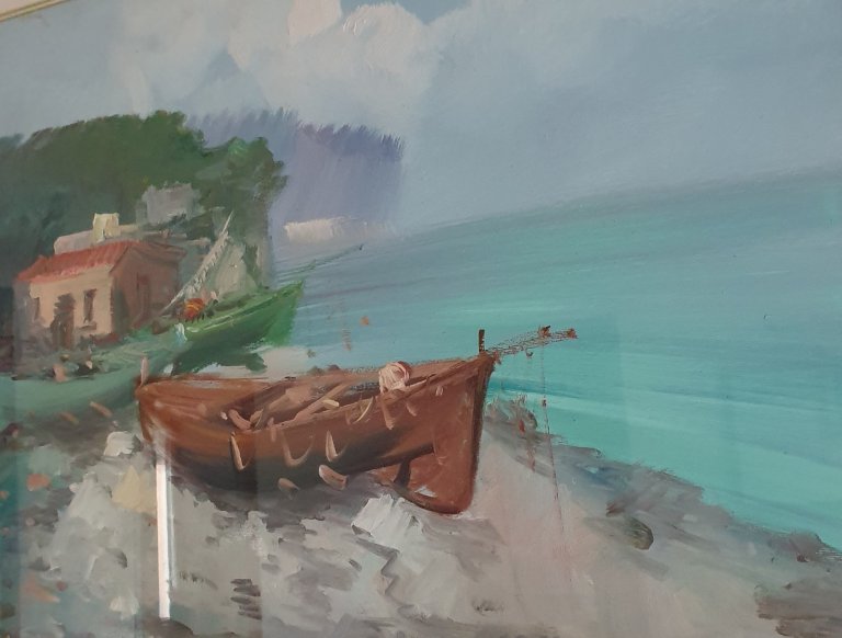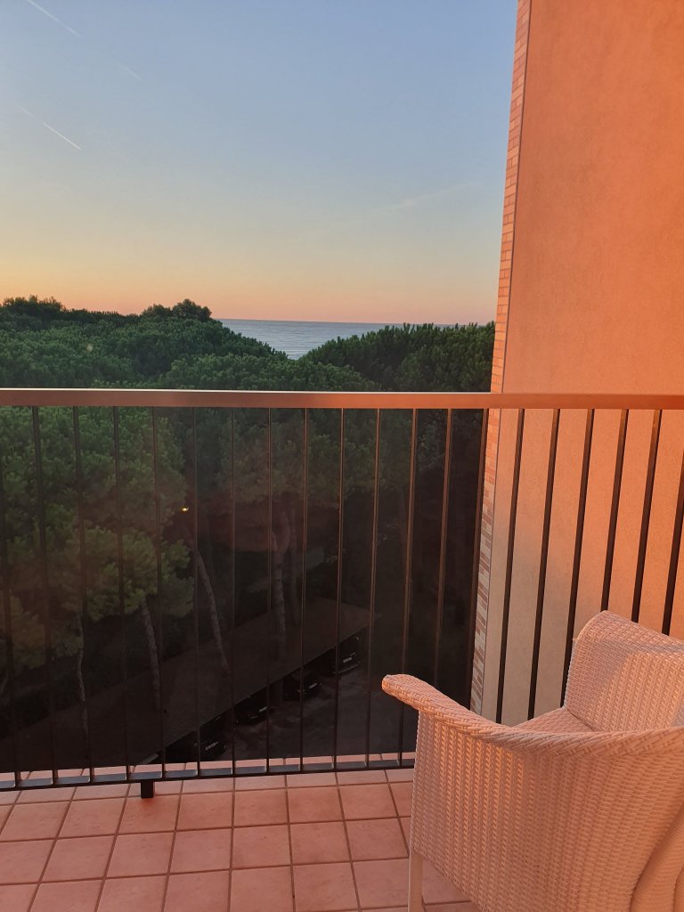 In Lido di Jesolo-Pineta, Italy (sometimes the colours of the paintings fit the surroundings of the hotel: the dark green of the pinewood, the turquoise blue of the sea, the abricot of the buildings…)