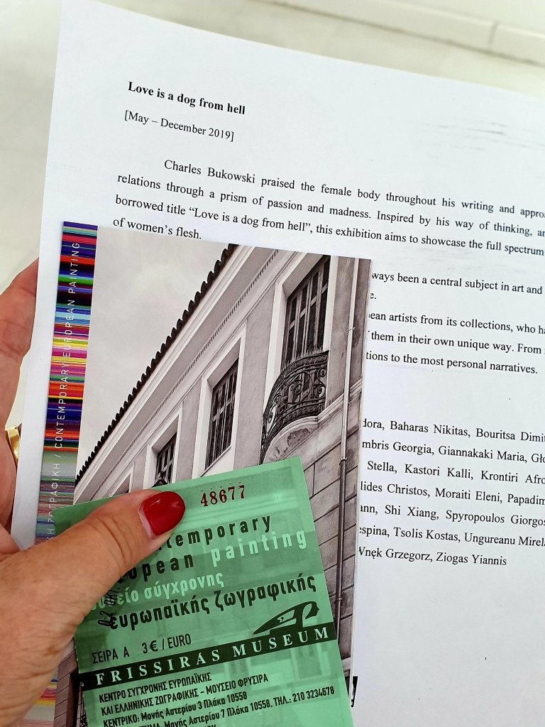 3. Oktober 20193. Oktober 2019 R E C O M M E N D E D in Athens: Frissiras Museum Plaka (Monis Asteriou 3) with the current exhibition LOVE IS A DOG FROM HELL (until December 2019) Teilen mit: Auf X teilen (Wird in neuem Fenster geöffnet) X Auf Facebook teilen (Wird in neuem Fenster geöffnet) Facebook Gefällt mir Wird geladen … Veröffentlicht von yvonnenodaywithoutfinearts Oberstudienrätin für Englisch und Französisch im Ruhestand. Kunstschaffend und -begeistert und reisefreudig Zeige alle Beiträge von yvonnenodaywithoutfinearts