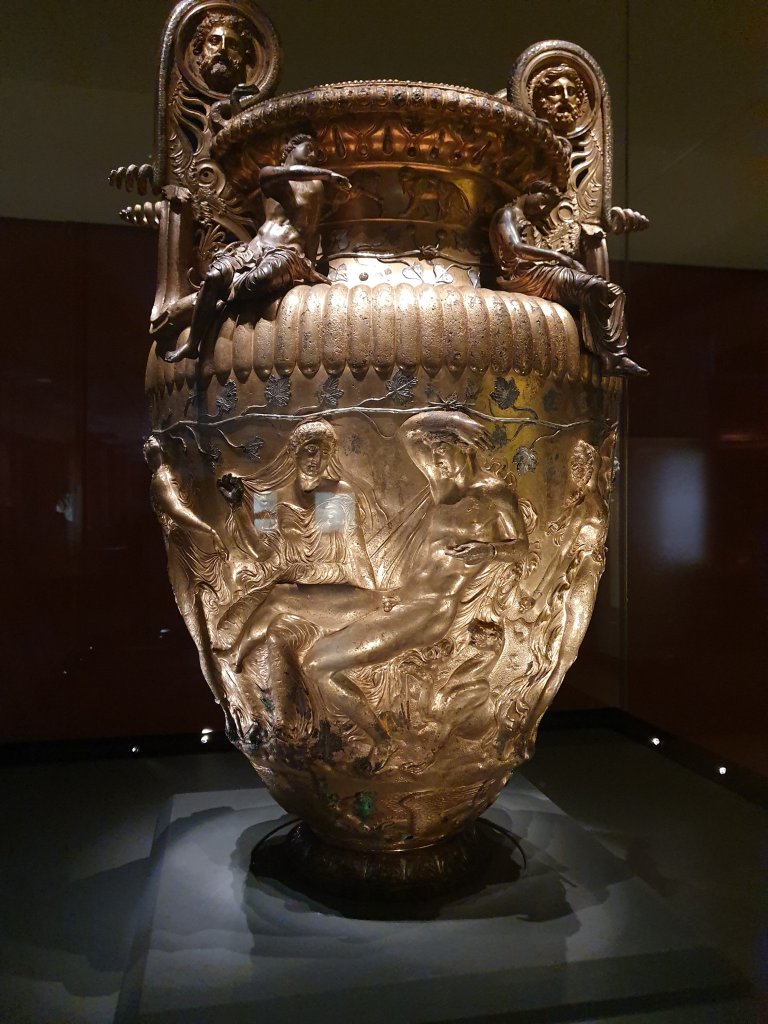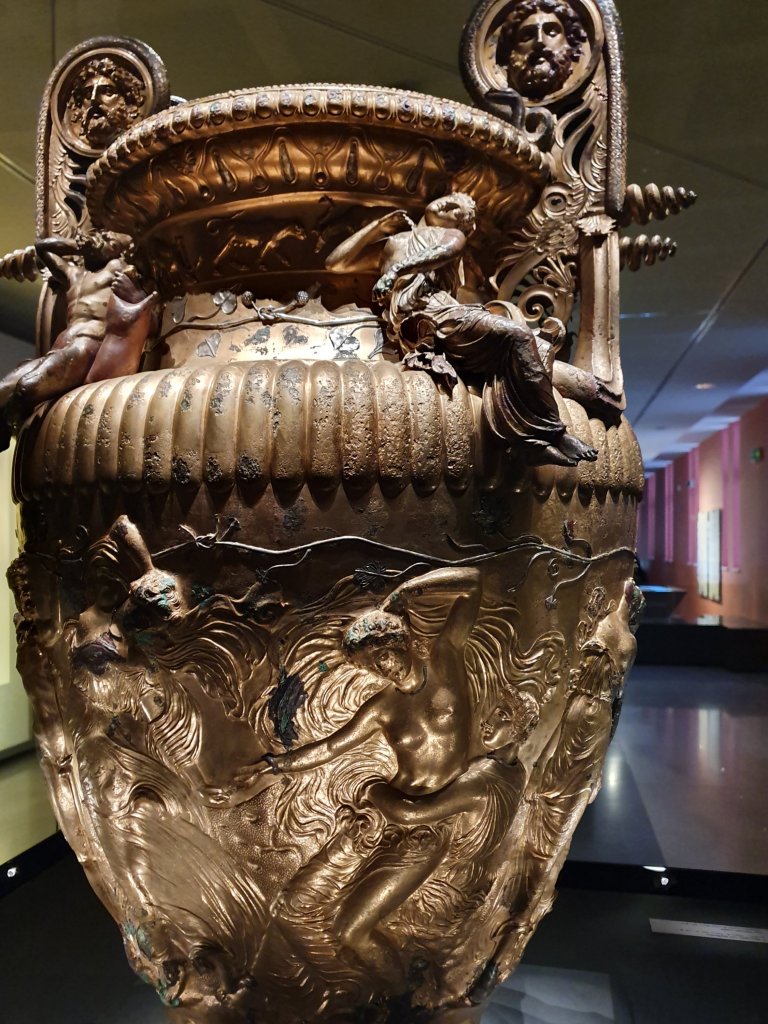 Auf einem Gefäß, das als Grabbeilage aus dem 4. vorchristlichen Jahrhundert in Derveni, nördlich von Thessaloniki gefunden wurde, aus Bronze gemacht @ Archeological Museum of Thessaloniki