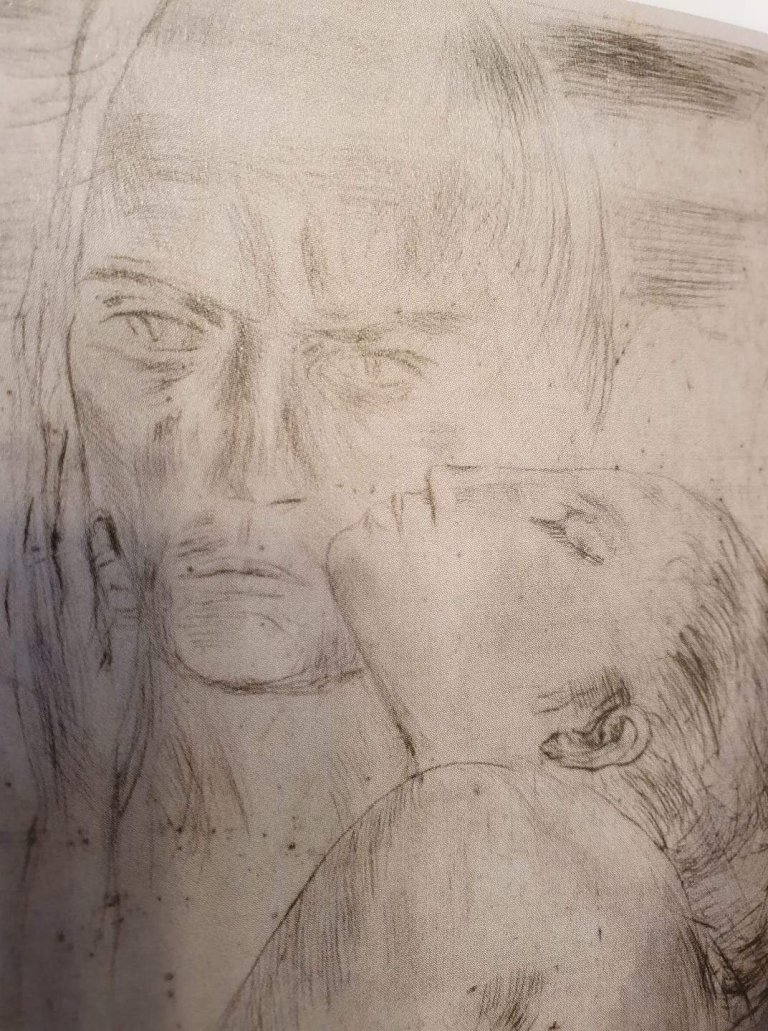 Eine der letzten Zeichnungen des leider jung aus dem Leben geschiedenen Wilhelm Lehmbruck (Kaltnadel, 1918): „2 Menschen“ oder „die Liebenden“ genannt