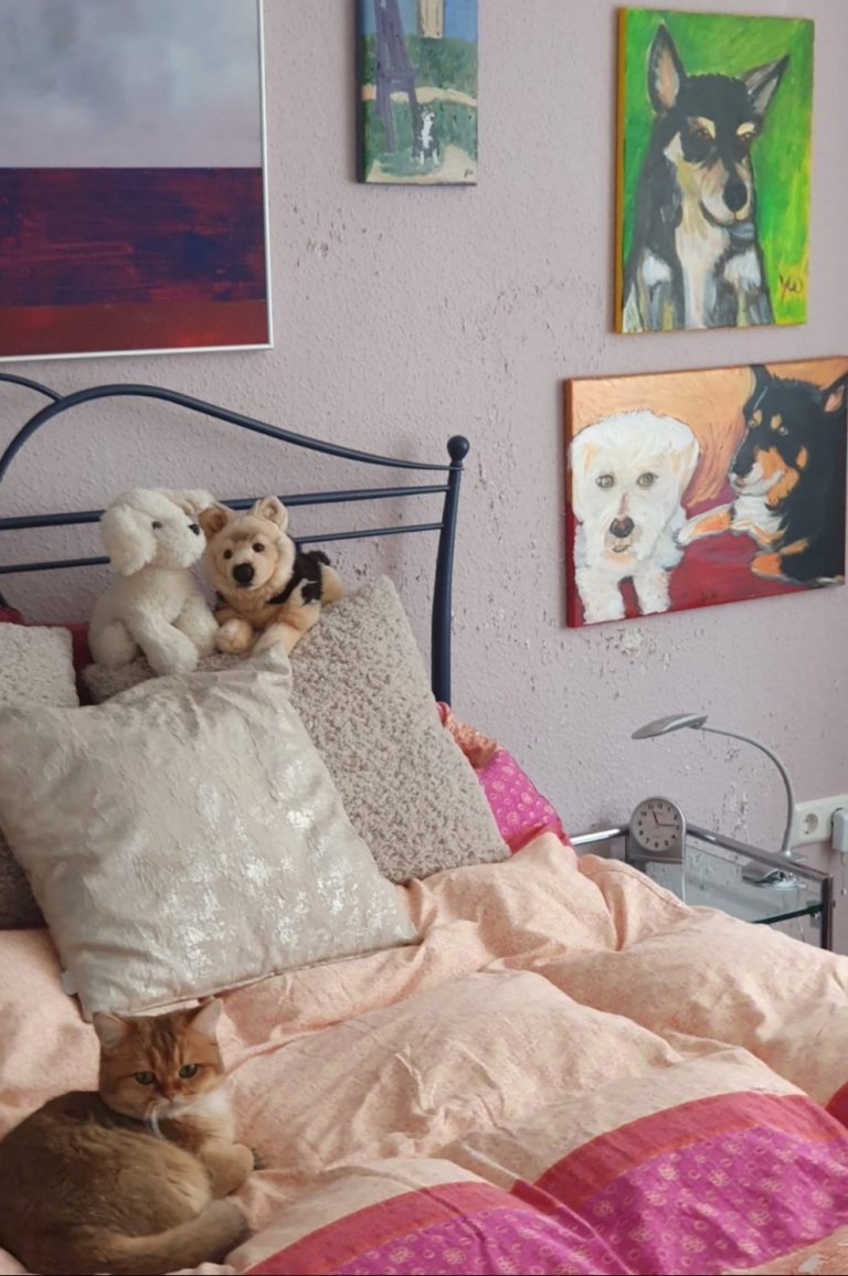 7. November 20197. November 2019 In front of ART (51) Miezi the cat in front of Art which shows her dog brothers Ljomi, the birthday dog, and Timmy Paintings by Yvonne Wilken Teilen mit: Auf X teilen (Wird in neuem Fenster geöffnet) X Auf Facebook teilen (Wird in neuem Fenster geöffnet) Facebook Gefällt mir Wird geladen … Veröffentlicht von yvonnenodaywithoutfinearts Oberstudienrätin für Englisch und Französisch im Ruhestand. Kunstschaffend und -begeistert und reisefreudig Zeige alle Beiträge von yvonnenodaywithoutfinearts