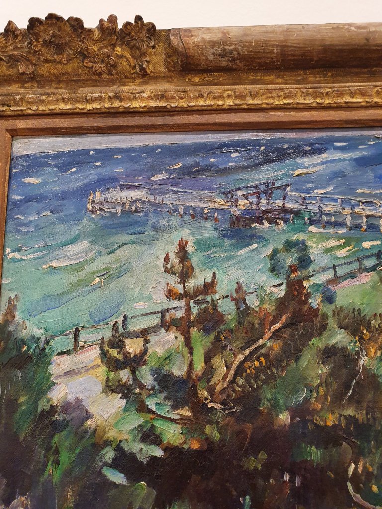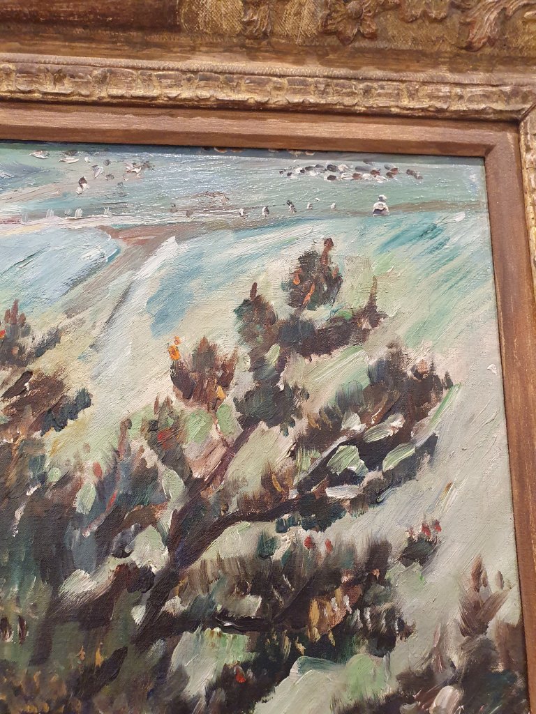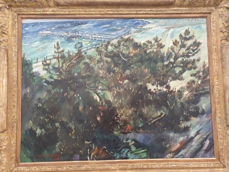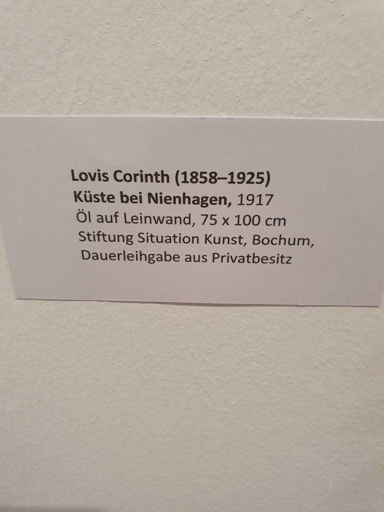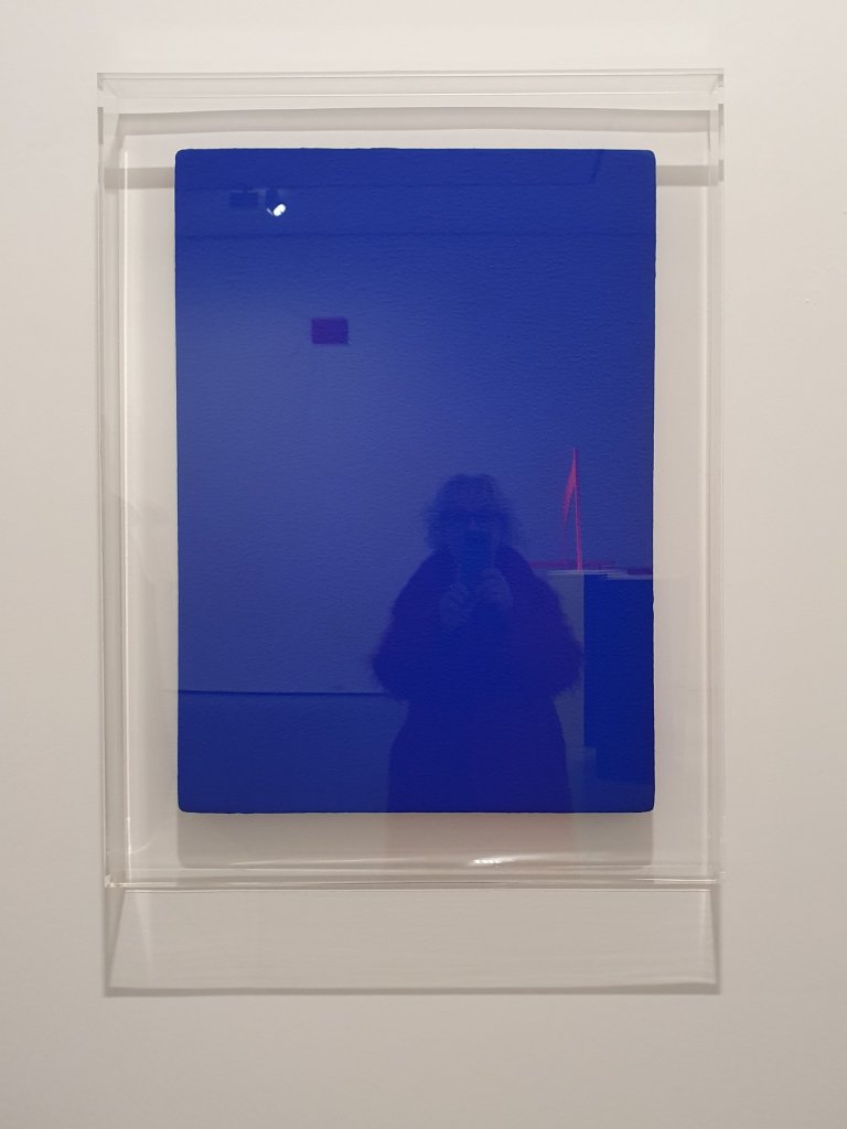 @ Situation Kunst – Museum unter Tage, Bochum : echtes Yves-Klein-Blau mit Spiegelungen in Rot 😉 sowie das Blau in „Twilight“ von Leon Polk Smith in einer ganz tollen Ausstellung „Farbanstöße“, die auch in dem Bild von Lovis Korinth zeigt, dass es dem Künstler weniger um das Sujet („Küste bei Nienhagen“) geht (sonst hätte er nicht alles, was hier auf Küste und Seestück deutet, an den oberen linken Rand gepresst und den Bäumen am Abhang die Hauptrolle gegeben) sondern um die pralle, satte blau-grüne Farbe…