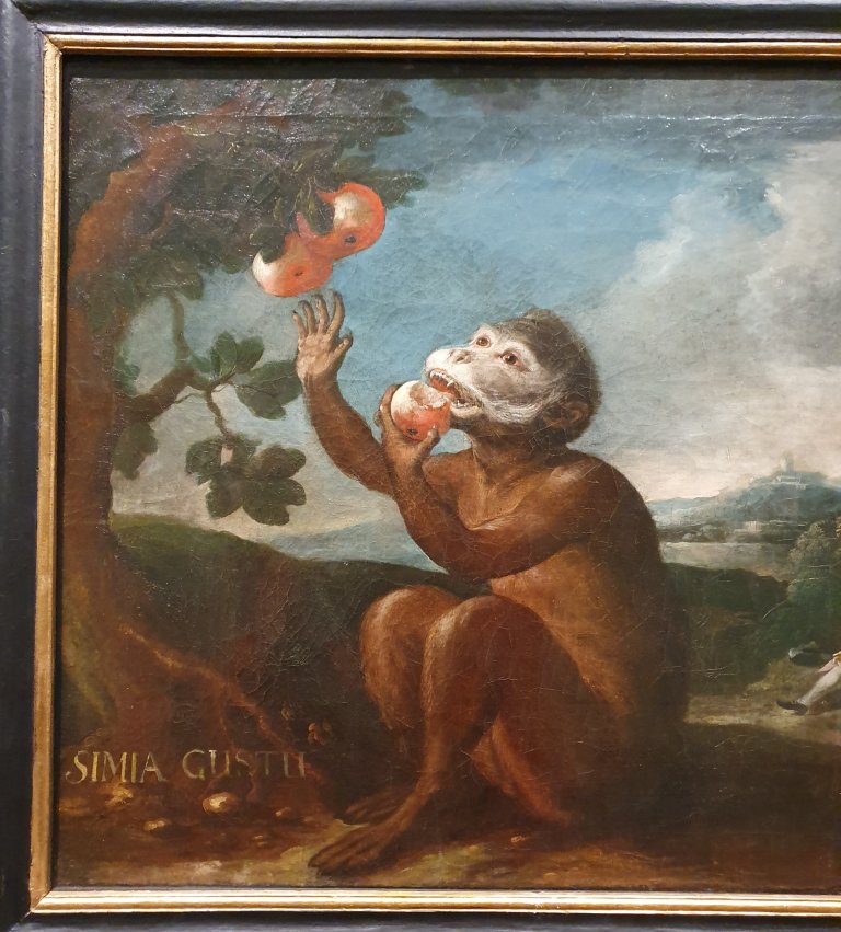 Im Zyklus der 5 Sinne (entstanden zwischen 1760 und 1770) erscheint der Affe als Symbol für den Geschmack – gesehen im Vonderau Museum Fulda