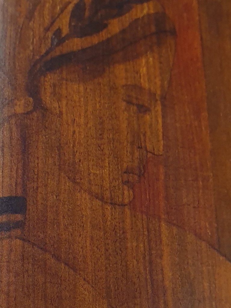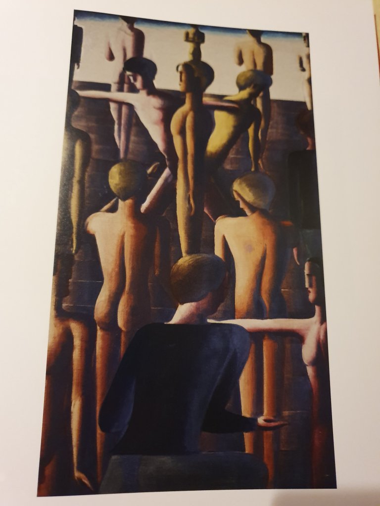 The very typical painting of 1929, „Fünfzehnergruppe“ and the more untypical „Pompejanerin“ (Detail) of the year 1942 – shortly before he died at the age of 55