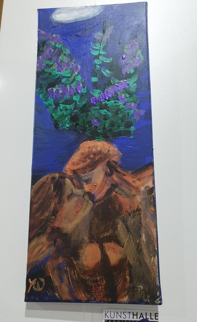 Heute vor 100 Jahren (am 21.2.1920) hat Bertolt Brecht während einer Zugreise nach Berlin das Gedicht „Erinnerung an Marie A“ geschrieben, in dem ein küssendes Liebespaar, ein Pflaumenbaum und eine weiße Wolke eine Rolle spielen. Ich habe dieses Gedicht immer besonders gemocht und passend zum 100. Jubiläum in Malerei umgesetzt. Außerdem zum „Gedichtsdiptychon“ noch eine malerische Transformation des Gedichts „Vorfrühling“ von Otto Julius Bierbaum, auch gen. Simplicissimus geliefert. Alles zu betrachten und/oder kaufen in der Kunsthalle Am Phönixsee