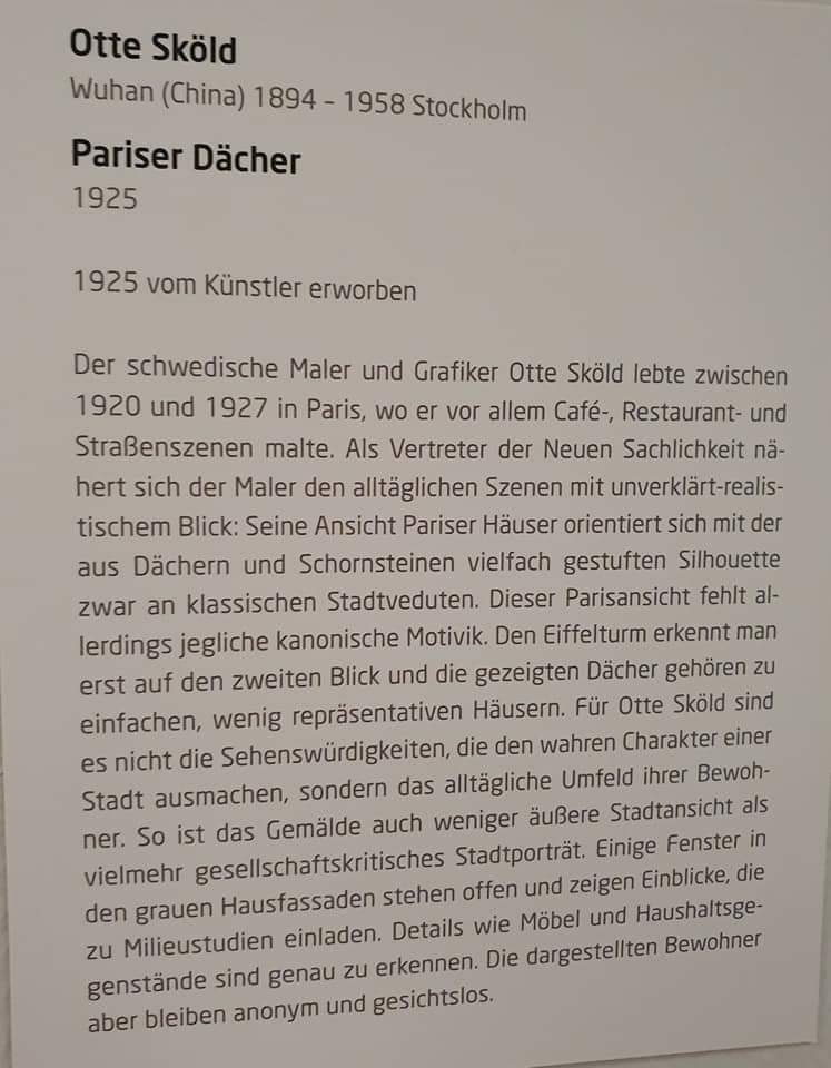 4. März 20204. März 2020 City views in painting Der Grund, warum ich dieses Bild heute ausgesucht habe? (fotografiert im Museum Behnhaus Drägerhaus, Lübeck 1/2020)…mal was Positives aus Wuhan, China! Dort wurde nämlich der schwedische Maler Otte Sköld geboren. Teilen mit: Auf X teilen (Wird in neuem Fenster geöffnet) X Auf Facebook teilen (Wird in neuem Fenster geöffnet) Facebook Gefällt mir Wird geladen … Veröffentlicht von yvonnenodaywithoutfinearts Oberstudienrätin für Englisch und Französisch im Ruhestand. Kunstschaffend und -begeistert und reisefreudig Zeige alle Beiträge von yvonnenodaywithoutfinearts