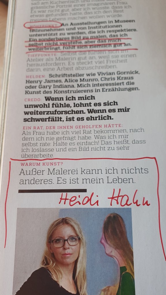 30. März 202030. März 2020 ART quotation 129 by Heidi Hahn (*1982 California) @ Art, das Kunstmagazin 2/2020 Teilen mit: Auf X teilen (Wird in neuem Fenster geöffnet) X Auf Facebook teilen (Wird in neuem Fenster geöffnet) Facebook Gefällt mir Wird geladen … Veröffentlicht von yvonnenodaywithoutfinearts Oberstudienrätin für Englisch und Französisch im Ruhestand. Kunstschaffend und -begeistert und reisefreudig Zeige alle Beiträge von yvonnenodaywithoutfinearts