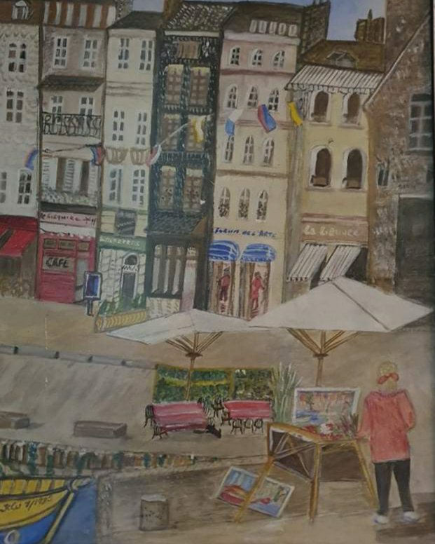 Karola Wilken, Honfleur, Aquarell – dort wäre ich ohne Corona eigentlich jetzt. Das Bild, das meine Mutter 1993 malte, bringt mir ein bisschen die Atmosphäre dieser hübschen Hafenstadt in der Normandie zurück und schöne Erinnerungen an meine Mutter und unsere langen Malsessions