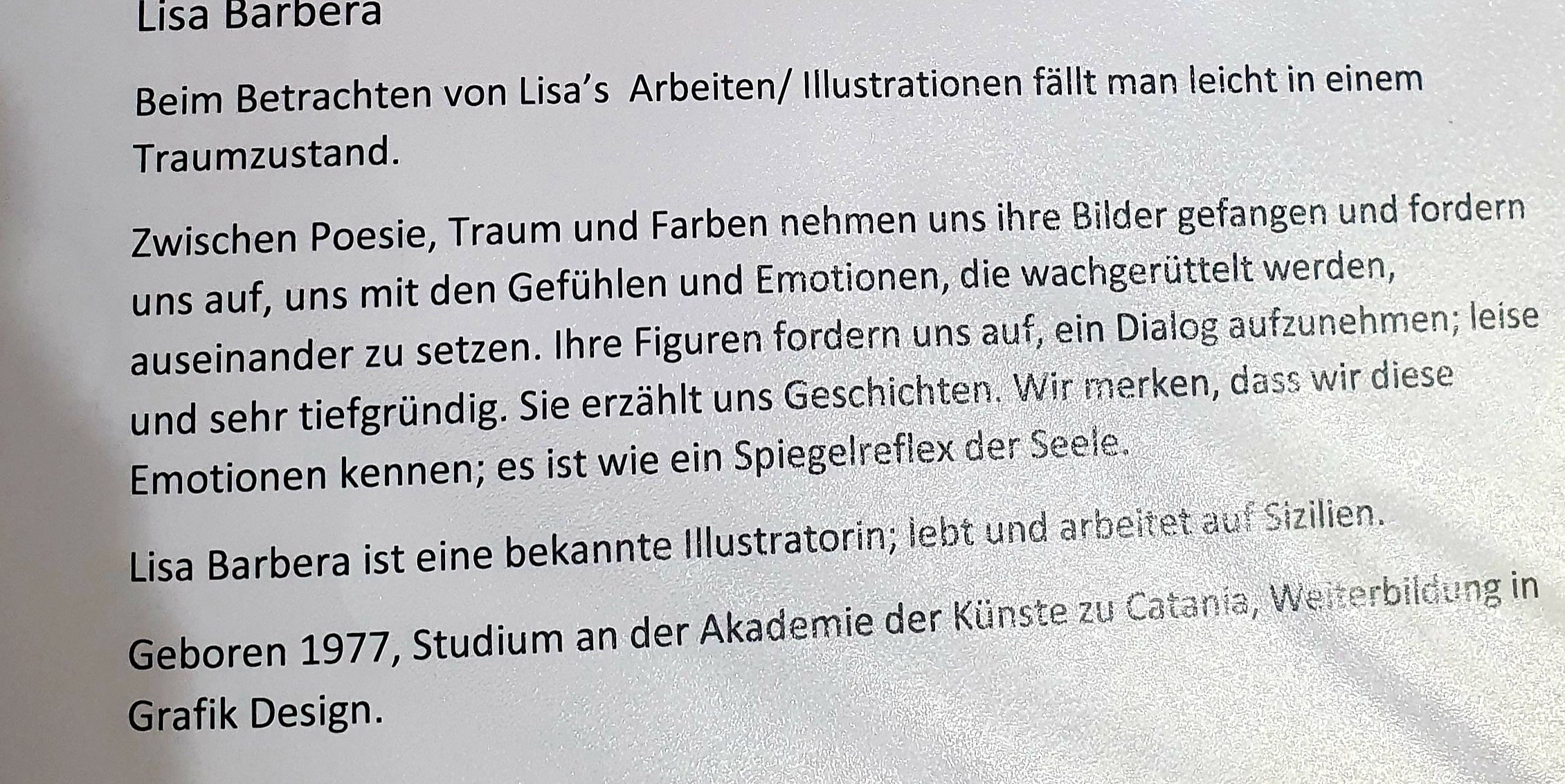 2. August 20202. August 2020 The artist and her work: Lisa Barbera, Sicily @ Kunsthalle am Phönixsee Teilen mit: Klicke, um auf X zu teilen (Wird in neuem Fenster geöffnet) X Klick, um auf Facebook zu teilen (Wird in neuem Fenster geöffnet) Facebook Gefällt mir Wird geladen … Veröffentlicht von yvonnenodaywithoutfinearts Oberstudienrätin für Englisch und Französisch im Ruhestand. Kunstschaffend und -begeistert und reisefreudig Zeige alle Beiträge von yvonnenodaywithoutfinearts